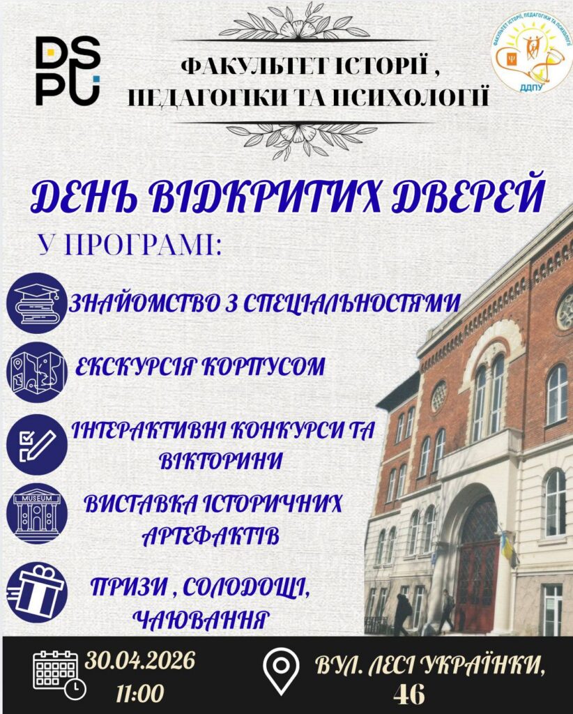 30 квітня о 11:00 відбудеться День відкритих дверей на факультеті історії, педагогіки та психології.