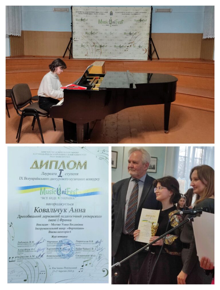 Новини Студентка Дрогобицького університету – лауреатка Всеукраїнського музичного конкурсу «MusicUniFest-2026» Детальніше 30.03.2026