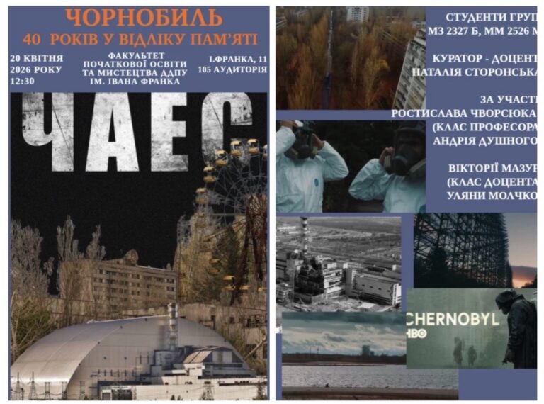 Новини Круглий стіл “Чорнобиль: памʼять, що обʼєднує покоління” на факультеті початкової освіти і мистецтва Детальніше 24.04.2026