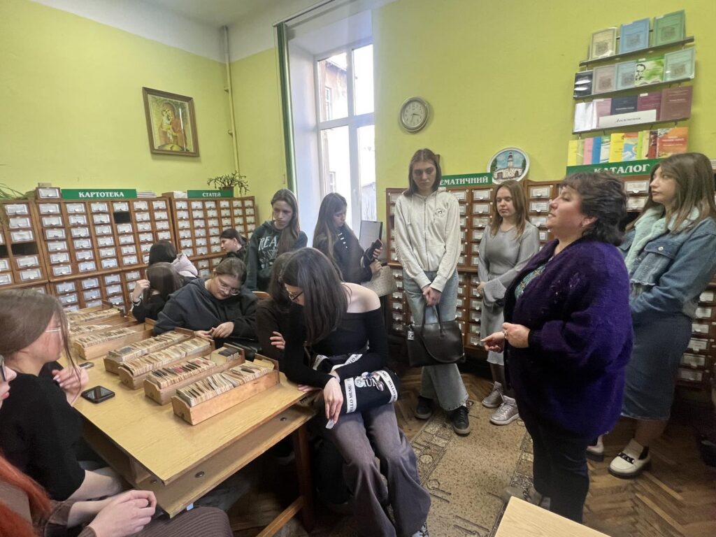 Завідувачка інформаційно-бібліографічного відділу Розалія Кивацька подала студентам цікаву і корисну інформацію щодо пошуку необхідних наукових джерел в каталозі.