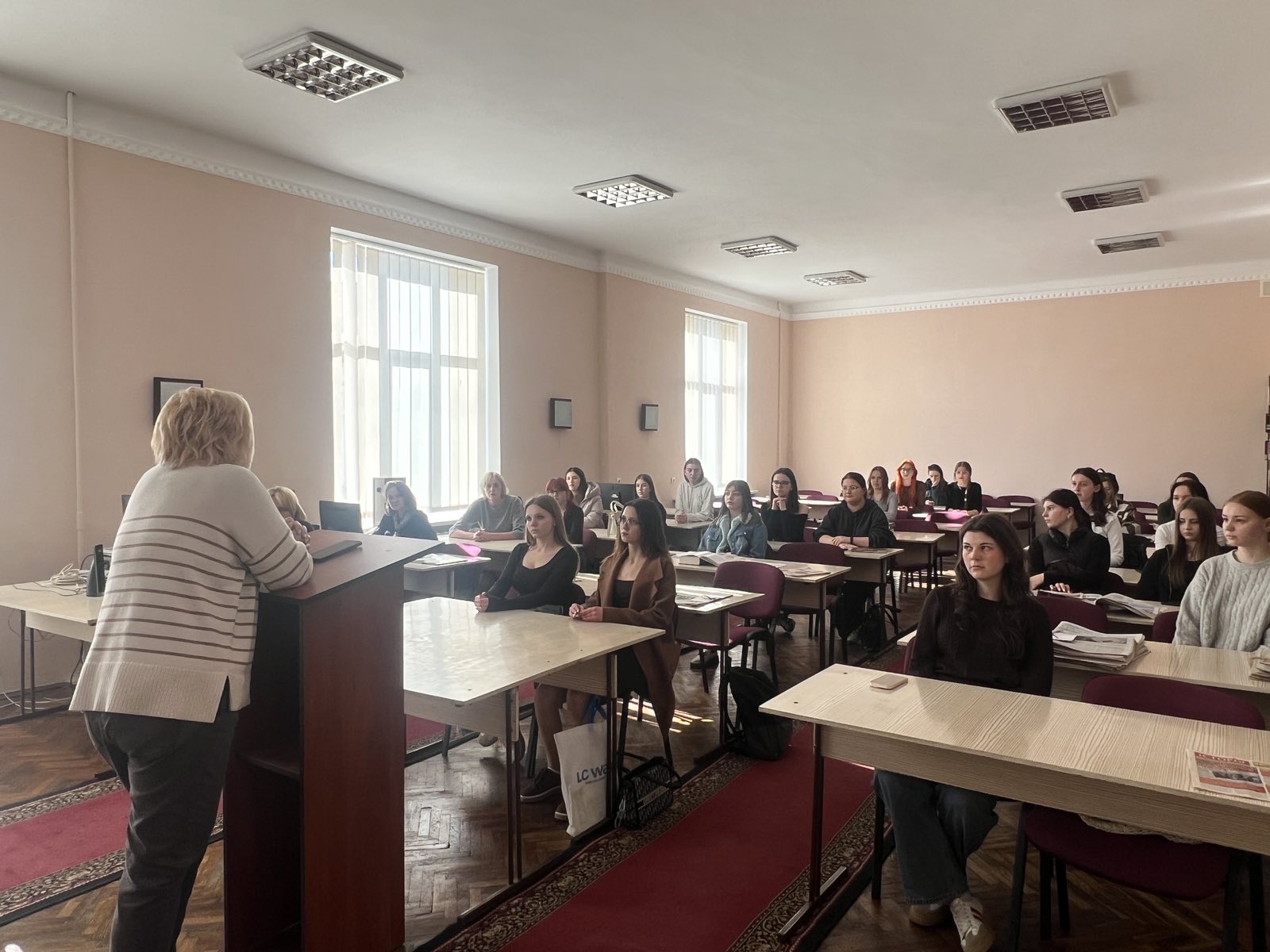 Заступниця директора бібліотеки Світлана Кравцова розповіла про історію її створення. Завідувачка відділу перевірки академічних текстів на плагіат Марія Зварич ознайомила студентів з основними принципами академічної доброчесності, зокрема з питаннями запобігання плагіату, коректного цитування джерел та відповідального ставлення до результатів власної наукової діяльності. Окрему увагу було приділено сучасним викликам, пов’язаним із використанням інструментів штучного інтелекту під час навчання та наукових досліджень.