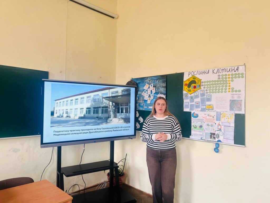 26 березня 2026 року на кафедрі біології та хімії факультету здоров’я людини та природничих наук проходив захист виробничої (педагогічної) практики здобувачів освіти, що навчаються за освітніми програмами Середня освіта (Біологія та здоров’я людини, хімія) та Біологія. З метою належної організації та проведення захисту педагогічної (виробничої) практики була створена комісія. До складу комісії увійшли: Григорій КОССАК – кандидат педагогічних наук, доцент, доцент кафедри біології та хімії, факультетський керівники практики, голова комісії; Сузанна ВОЛОШИН – кандидат педагогічних наук, доцент кафедри біології та хімії; Лілія КРОПИВНИЦЬКА – кандидат технічних наук, доцент, доцент кафедри біології та хімії; Світлана БІЛОЗЕРСЬКА – кандидат психологічних наук, доцент кафедри психології; Мар’яна ЛЯХОВИЧ – вчитель біології та хімії, спеціаліст вищої категорії, старший вчитель ліцею №3 імені В’ячеслава Чорновола (за згодою). Під час захисту студенти представили презентації, у яких висвітлили як традиційні, так і інноваційні підходи до проведення уроків із застосуванням різноманітних методів, форм і методичних прийомів, зокрема інтерактивних («Мозковий штурм», «Карусель», «Дерево рішень», «Кубування», «Фішбоун» тощо). У процесі виступів особливу увагу було приділено використанню цифрових платформ та інструментів (Mozaik, QR-коди, ментальні карти, онлайн-тестування Kahoot), що сприяло підвищенню зацікавленості та динамічності навчання. Здобувачі освіти також поділилися власним практичним досвідом організації нетрадиційних занять – уроків-досліджень, уроків-квестів, уроків-проєктів, уроків-вікторин – а також розкрили особливості проведення лабораторних робіт, під час яких формували в учнів ЗЗСО цілісне уявлення про природні явища. Студенти-практиканти подякували методистам кафедри біології та хімії за методичний супровід, а вчителям-наставникам ЗЗСО, в яких проходила педагогічна практика, – за безцінний досвід та створення здоров’язбережувального безпечного освітнього середовища.