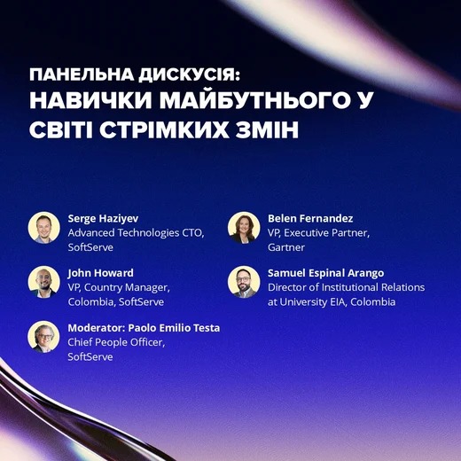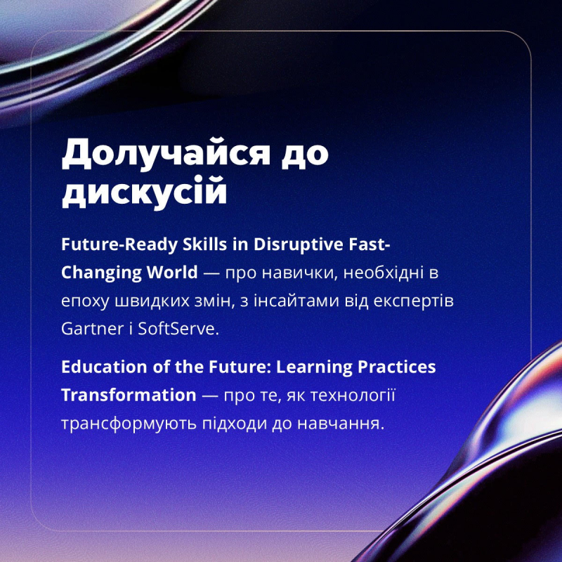 Програма зустрічі була присвячена трансформації освітніх парадигм під впливом штучного інтелекту, інноваційних технологій та динамічних змін на глобальному ринку праці. Під час двох панельних дискусій експерти з міжнародних організацій і бізнес-середовища проаналізували розвиток навичок майбутнього та модернізацію навчальних практик. Спікерами заходу виступили: член Ради директорів SoftServe Ярослав Любінець, віцепрезидентка з навчання та розвитку SoftServe Галина Даців, регіональний керівник SoftServe у Польщі Себастіан Джевецький, а також керівник напряму кваліфікацій та освіти European Commission Коен Номден і ректорка Національного університету «Львівська політехніка» Наталія Шаховська.
