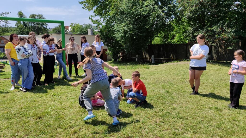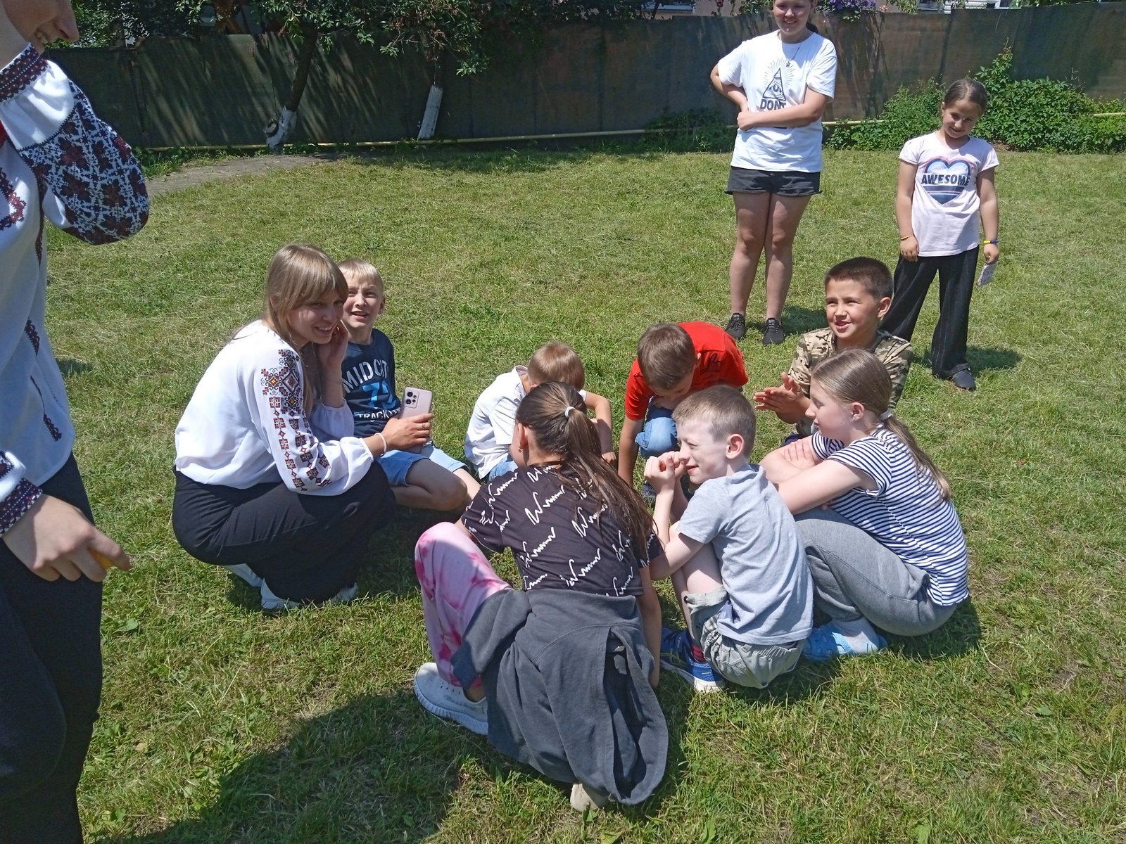 Після перегляду театралізованого дійства студенти та викладачі залучили дітей до цікавих ігор та забав, а також гаївок, веснянок та інших рухливих ігор. Дошкільнята та молодші школярики охоче провели хороводи «Голубка», «Ой до нори мишко», «Джерельце», пограли Котика та Мишки (охочих було багато, тому було одночасно по декілька Котиків та Мишок). Після того, як дошкільнята пішли на денний сон, ми разом із молодшими та старшими школярами перейшли продовжувати ігри на свіжому повітрі. Цікавими також були «Жабки», «Хустинки», «Колечко» та інші ігри. А ще особливе зацікавлення у дітей викликала командна гра разом із студентами у волейбол. Діти настільки захопилися іграми, що не хотіли нас відпускати й довго з нами прощалися та запрошували частіше до них приходити в гості.