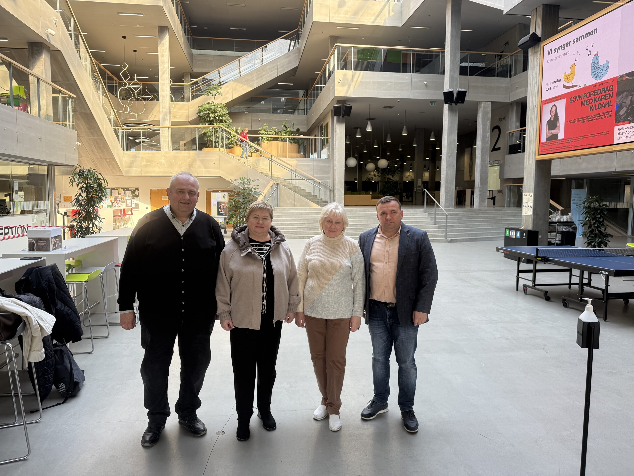 Делегація Дрогобицького державного педагогічного університету імені Івана Франка у складі ректора професора Валентини Бодак, проректора з міжнародних зв’язків доцента Ігоря Гриника, декана факультету історії, педагогіки та психології доцента Ореста Гука та професора кафедри соціальної педагогіки та корекційної освіти Тетяни Логвиненко 7-11 квітня взяли участь в «Міжнародному тижні персоналу», який проходив в Університетському коледжі ВІА (Данія). Візит відбувався в рамках програми міжнародної академічної мобільності Erasmus+. Упродовж тижня учасники заходу представляли свої заклади вищої освіти, знайомилися зі спеціальностями й освітніми програмами партнерів, обговорювали можливості і перспективи подальшої співпраці.