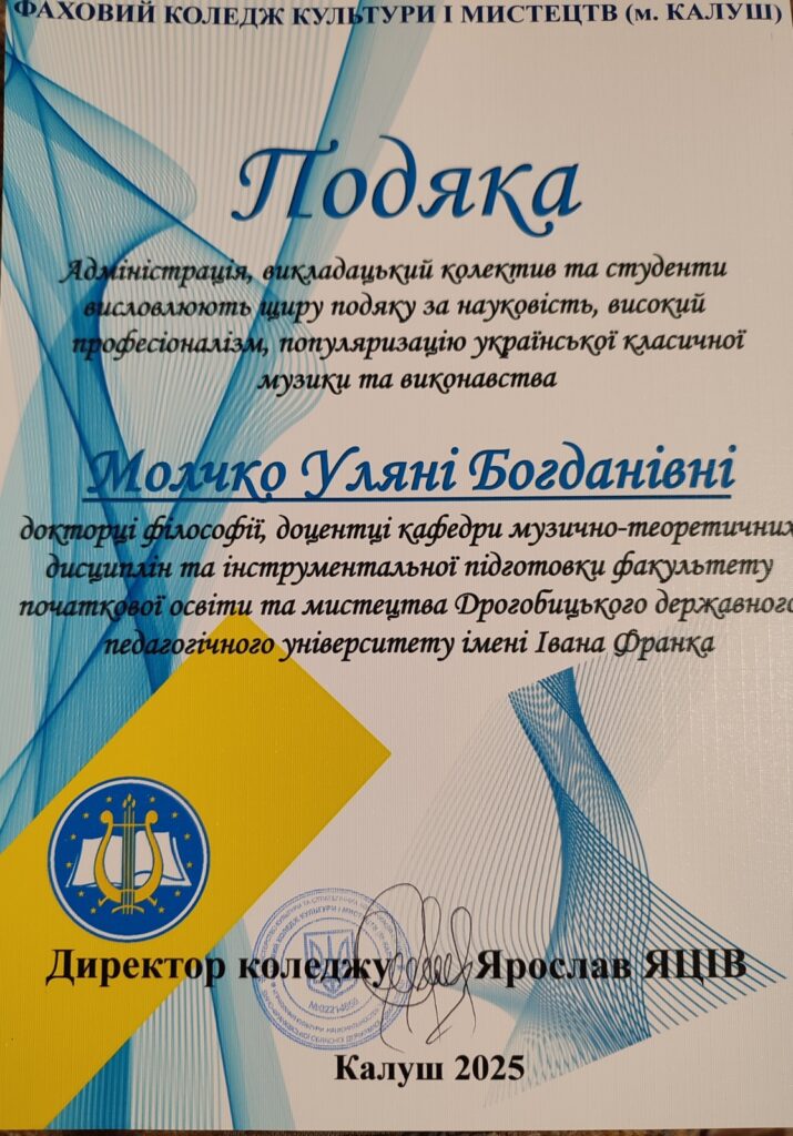 Зі словами подяки виступили – директор коледжу Ярослав Яців, завідувачка відділення культурно-мистецької освіти, докт. філософії, викладачка-методисткка Іванна Свирид, голова комісії викладачів вокально-хорових, музично-теоретичних дисциплін, фортепіано та концертмейстерства Наталія Даниляк, викладачка вищої категорії з класу фортепіано Уляна Петриляк.