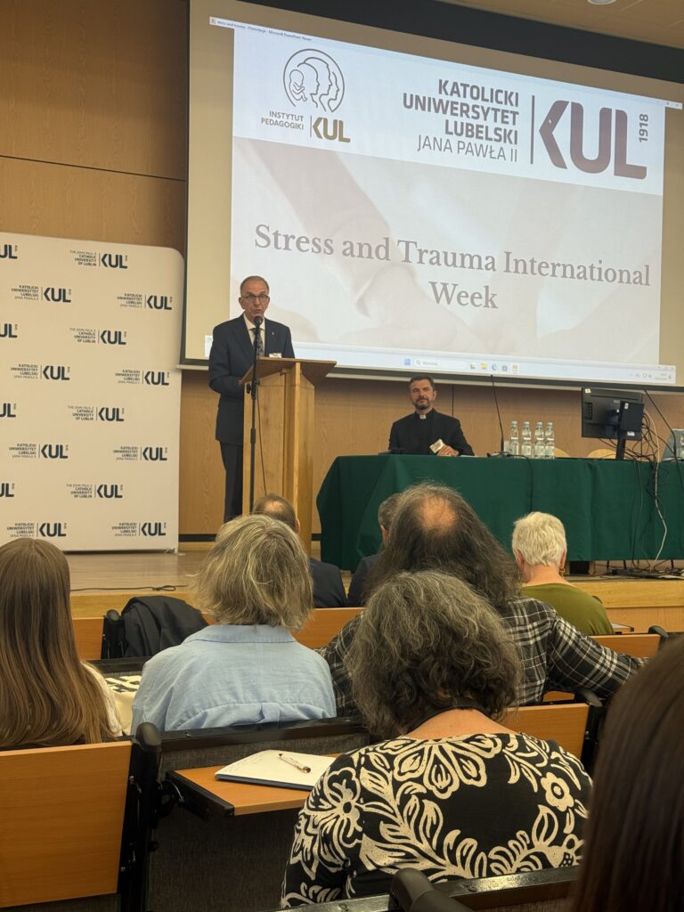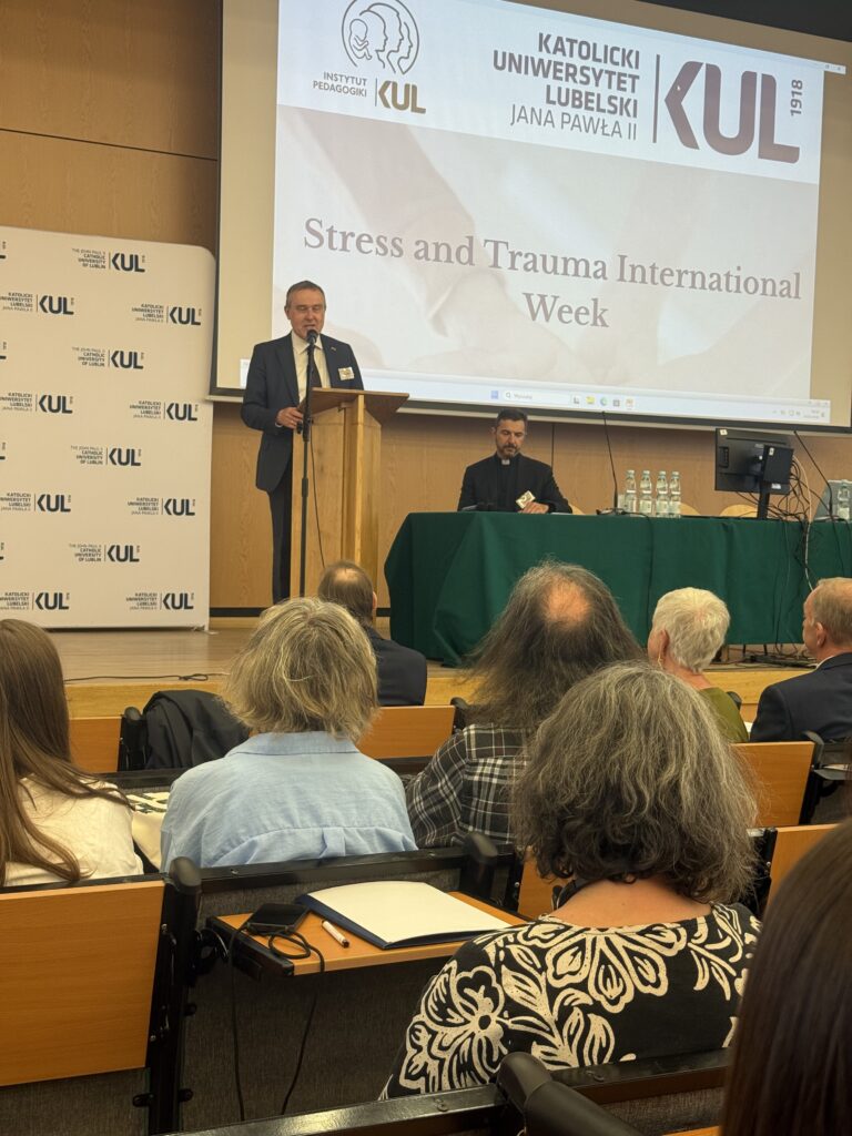 З 20 по 23 квітня 2026 року в Люблінському католицькому університеті імені Іоанна Павла ІІ відбулася масштабна науково-практична подія – Міжнародний тиждень «Stress and Trauma». Дрогобицький державний педагогічний університет імені Івана Франка став одним із ключових іноземних партнерів заходу поряд із бельгійськими, румунськими та польськими організаціями. Подія пройшла під високим патронатом Посла Бельгії в Україні пана Люка Якобса та Посла Бельгії в Польщі та Литві пана Ріка Ван Дрогенбрука за підтримки почесного доктора нашого університету Патріка Белінка (президента бельгійської неприбуткової організації Орадя). Дрогобицький університет на заході представили ректор професор Валентина Бодак, проректор з міжнародних зв’язків доцент Ігор Гриник, декан факультету історії, педагогіки та психології доцент Орест Гук, керівник відділу міжнародних зв’язків доцент Христина Войтович і керівник психологічної служби університету доцент кафедри психології Андрій Зимянський.