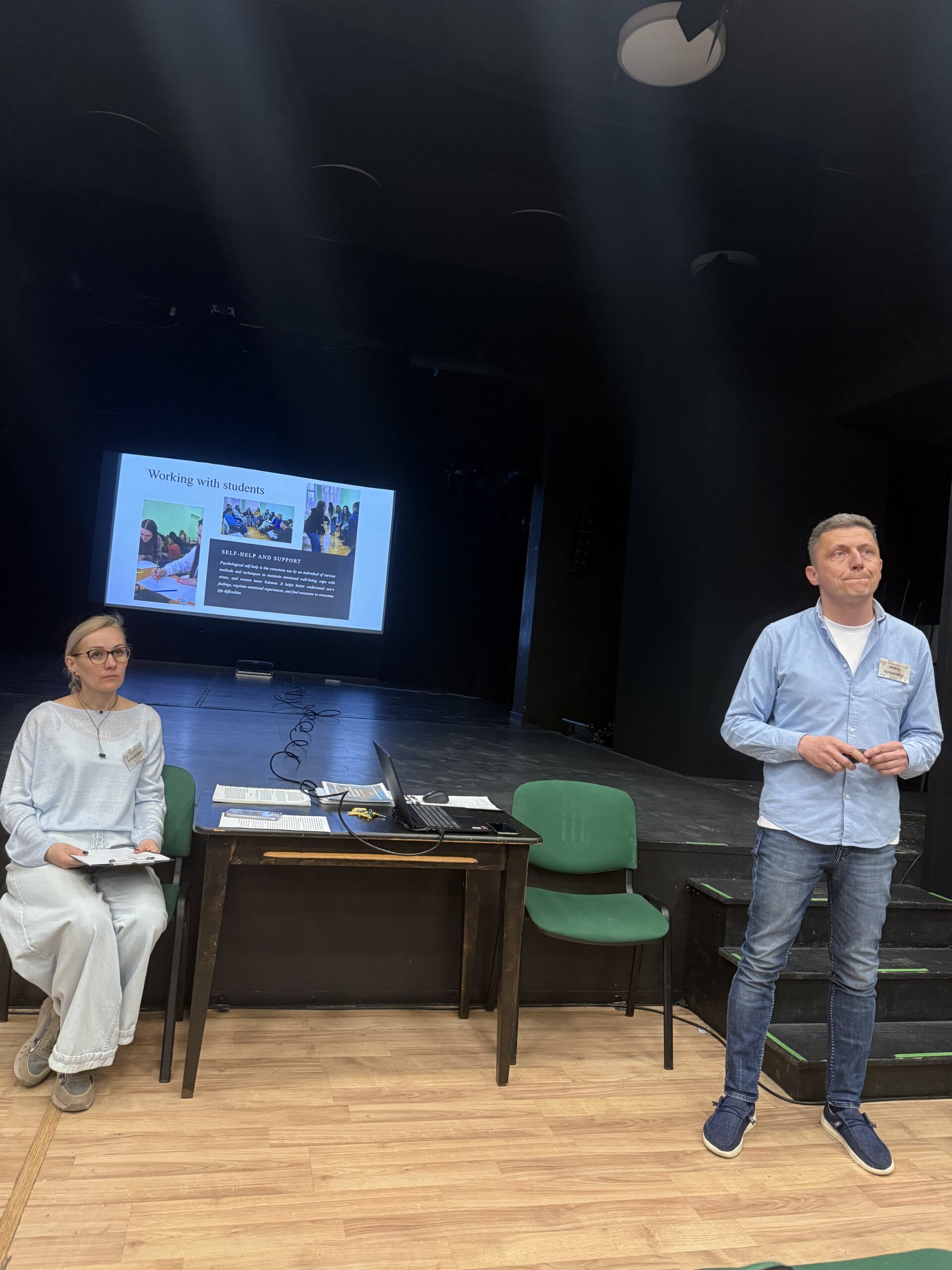 Окремою важливою частиною програми став відкритий практичний воркшоп, присвячений методиці «Діти і війна: техніки зцілення». Цю секцію провели наші колеги – Андрій Зимянський (доцент кафедри психології ДДПУ, керівник університетської психологічної служби) та Ірина Шустова (директорка Інклюзивно-ресурсного центру Дрогобича).