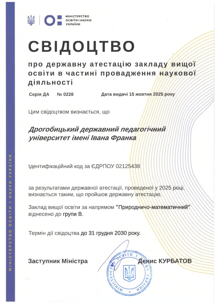 Дрогобицький педагогічний університет атестований за трьома науковими напрямами