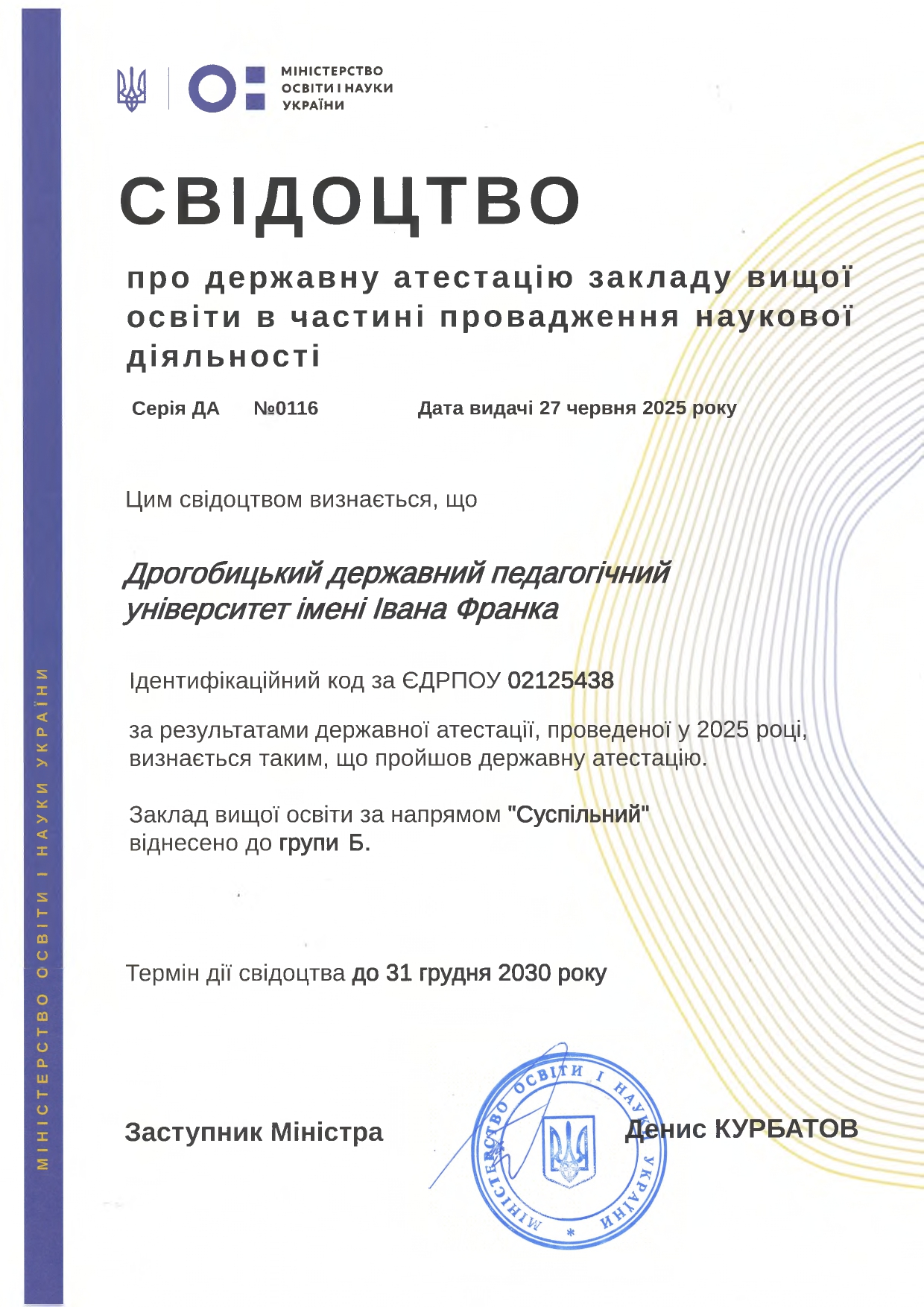 Дрогобицький педагогічний університет атестований за трьома науковими напрямами