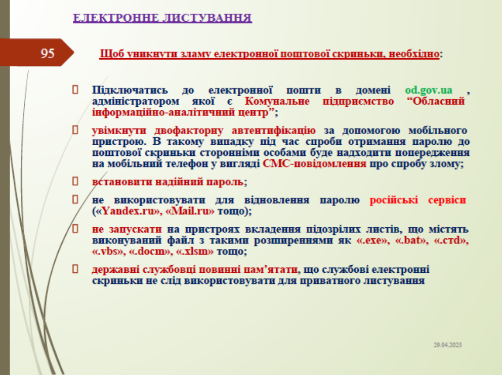 Окрему увагу було приділено безпечному електронному листуванню, використанню популярних месенджерів і налаштуванню їх безпеки, захисту онлайн-платежів та особливостям функціонування мобільних додатків, зокрема Getcontact і сервісу Findface.pro.