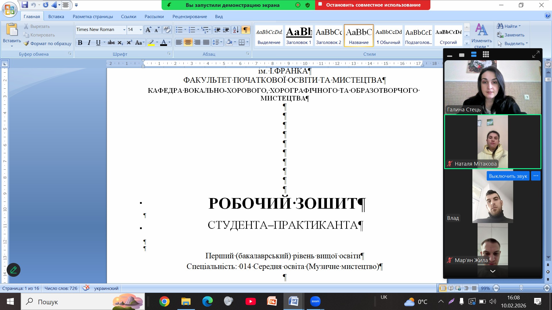 10 лютого 2026 року на факультеті початкової освіти та мистецтва відбулася інструктивна нарада з питань проходження виробничої (педагогічної) практики для здобувачів першого (бакалаврського) вищої освіти спеціальності 014 Середня освіта (Музичне мистецтво).