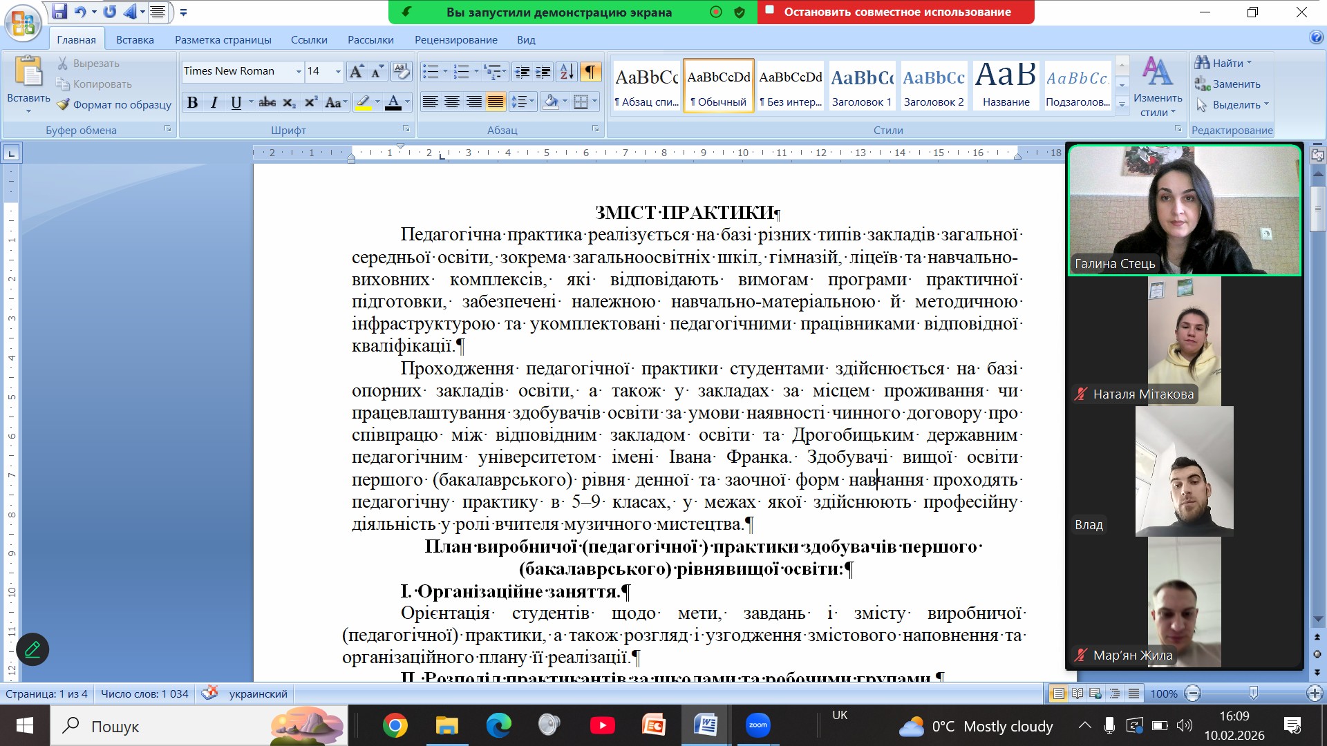 Під час наради керівник практики факультету Галина Стець ознайомила студентів з основними вимогами до організації та змісту виробничої (педагогічної) практики, особливостями її проходження в закладах загальної середньої освіти, а також із завданнями, які необхідно виконати упродовж практичного періоду. Окрему увагу було приділено питанням ведення звітної документації, зокрема заповнення робочого зошита, оформлення портфоліо та підготовки відеопрезентацій для підсумкової конференції (методист ‒ доц. Мартинів Л. І.). Наголошено на проблемах дотримання педагогічної етики та академічної доброчесності.