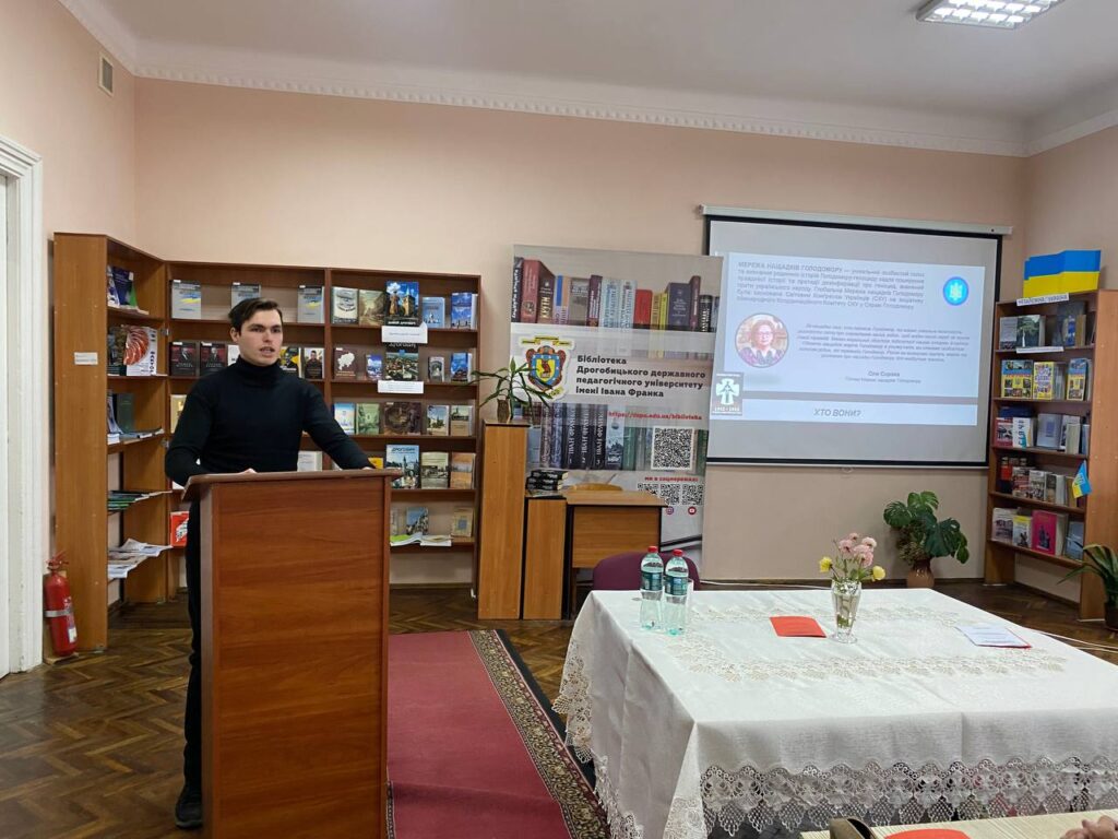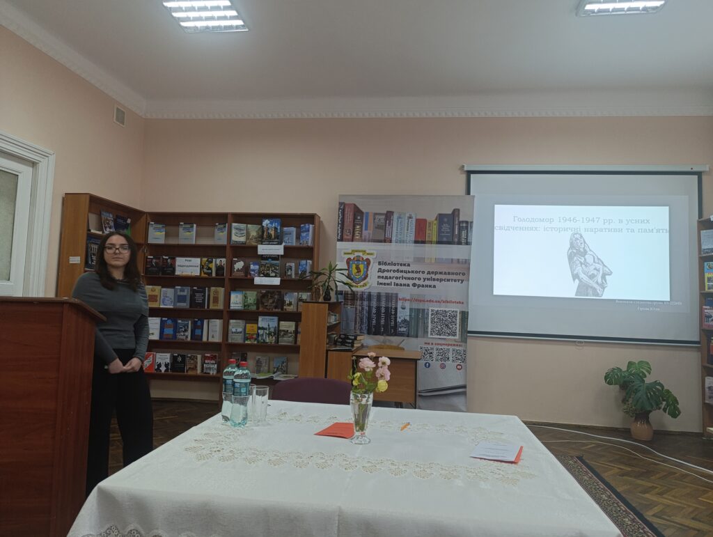 27 листопада в читальній залі бібліотеки Дрогобицького державного педагогічного університету імені Івана Франка відбувся круглий стіл «Голодомори в Україні: наукові інтерпретації, концепти та суспільні виміри», присвячений осмисленню трагічних сторінок української історії та сучасним підходам до вивчення теми Голодоморів. Захід організували кафедра історії України та правознавства факультету історії, педагогіки та психології, спільно з бібліотекою університету. Подія зібрала студентів, викладачів, дослідників і учнів старших класів, які прагнуть глибше зрозуміти історичні обставини та наслідки злочинів тоталітарного режиму проти українського народу.