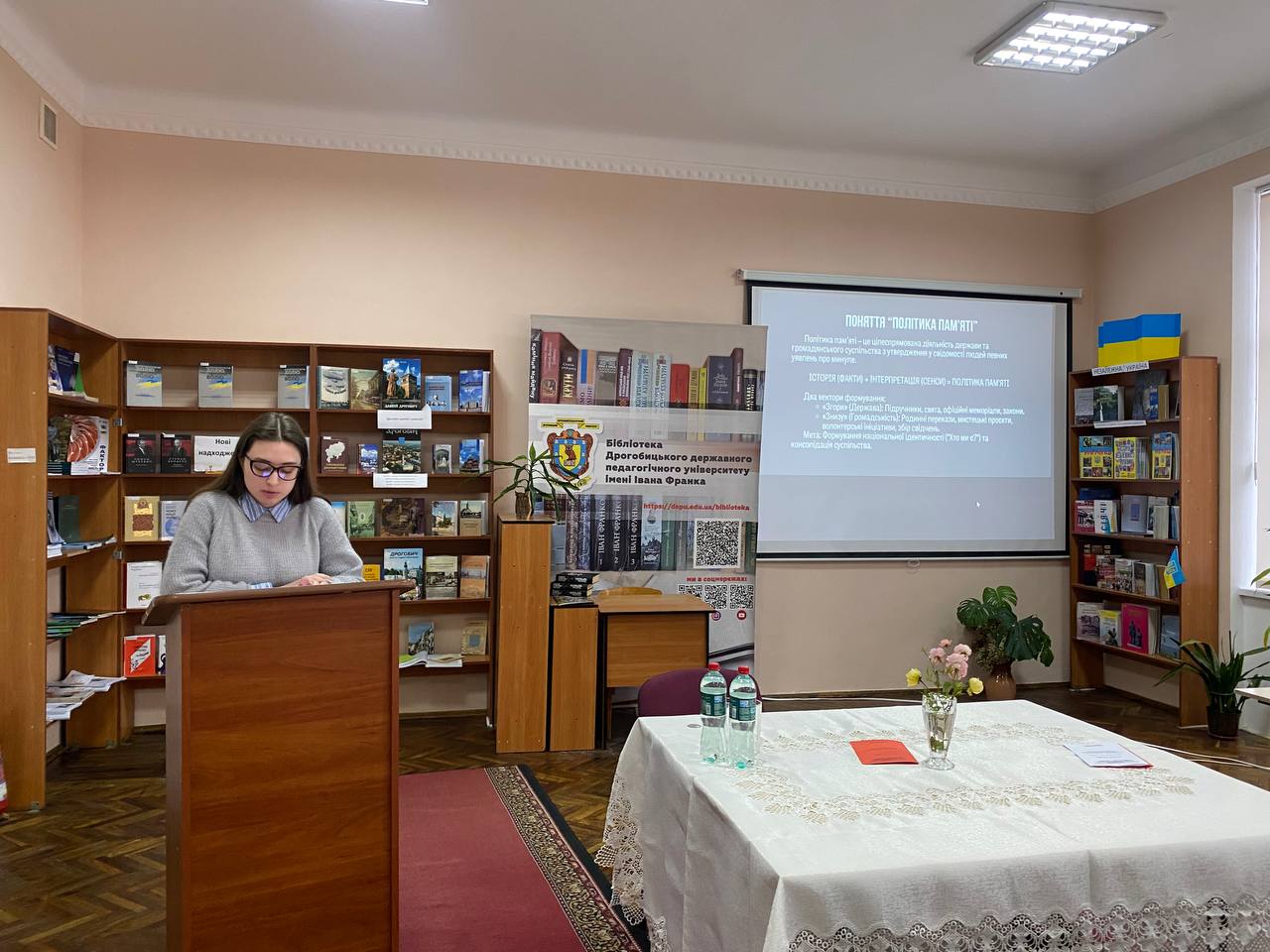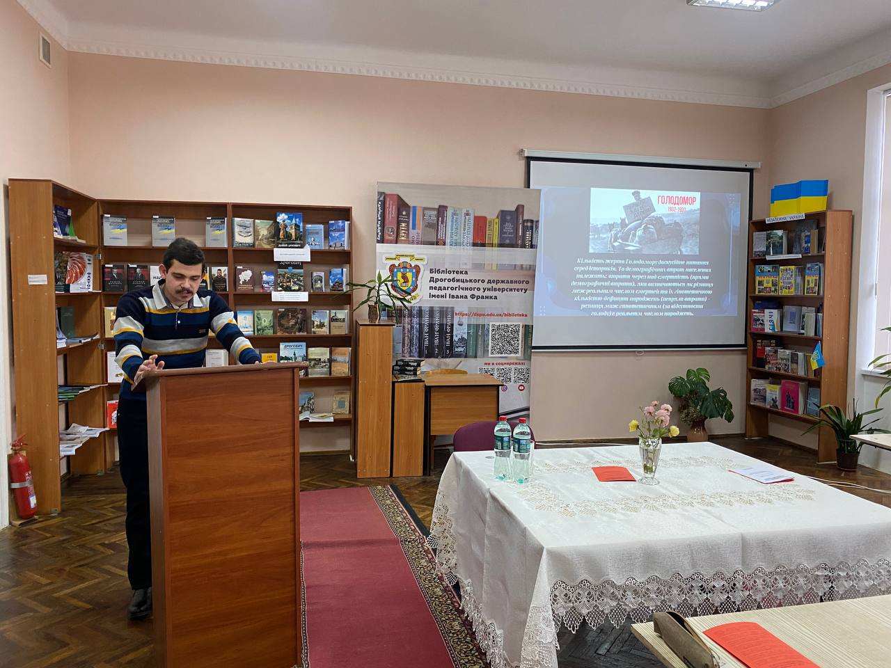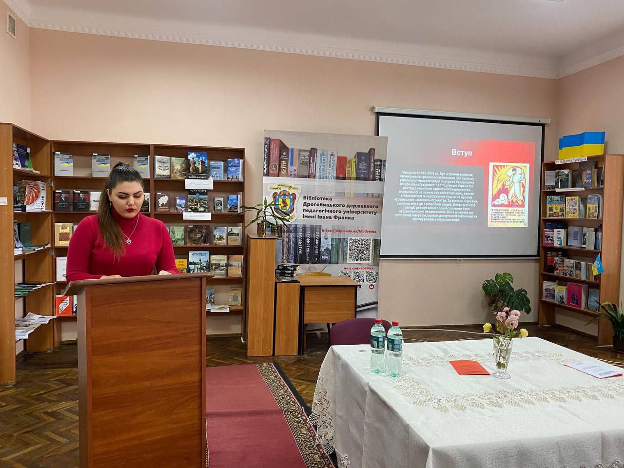 27 листопада в читальній залі бібліотеки Дрогобицького державного педагогічного університету імені Івана Франка відбувся круглий стіл «Голодомори в Україні: наукові інтерпретації, концепти та суспільні виміри», присвячений осмисленню трагічних сторінок української історії та сучасним підходам до вивчення теми Голодоморів. Захід організували кафедра історії України та правознавства факультету історії, педагогіки та психології, спільно з бібліотекою університету. Подія зібрала студентів, викладачів, дослідників і учнів старших класів, які прагнуть глибше зрозуміти історичні обставини та наслідки злочинів тоталітарного режиму проти українського народу.
