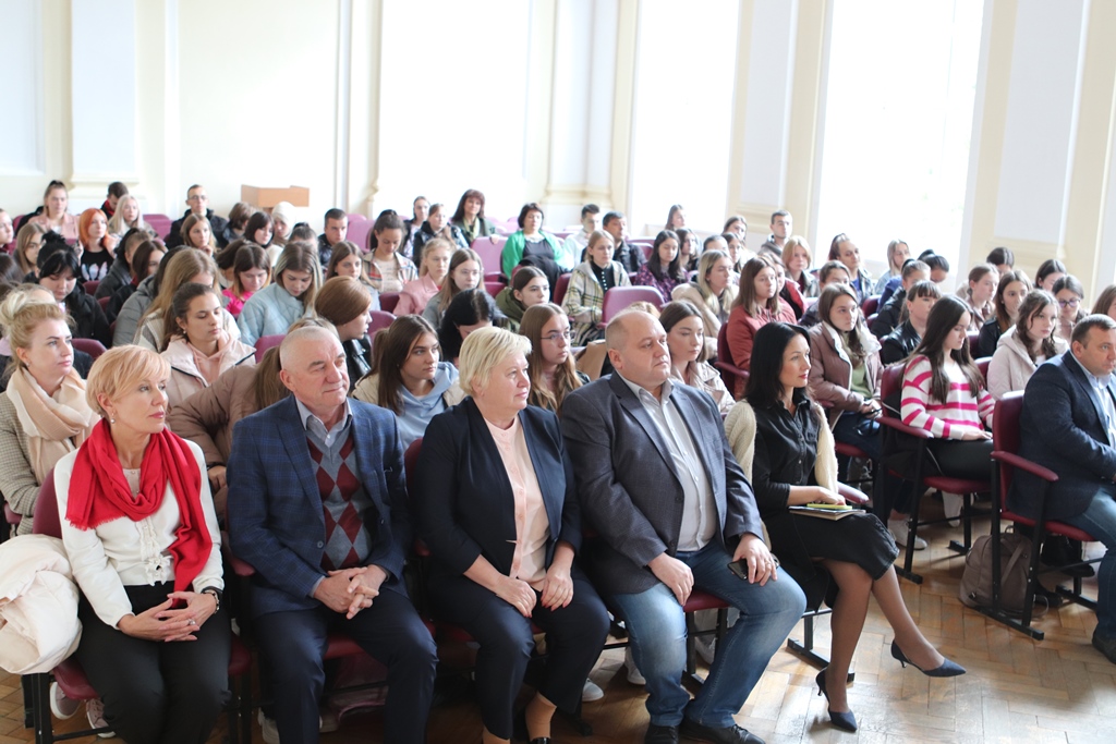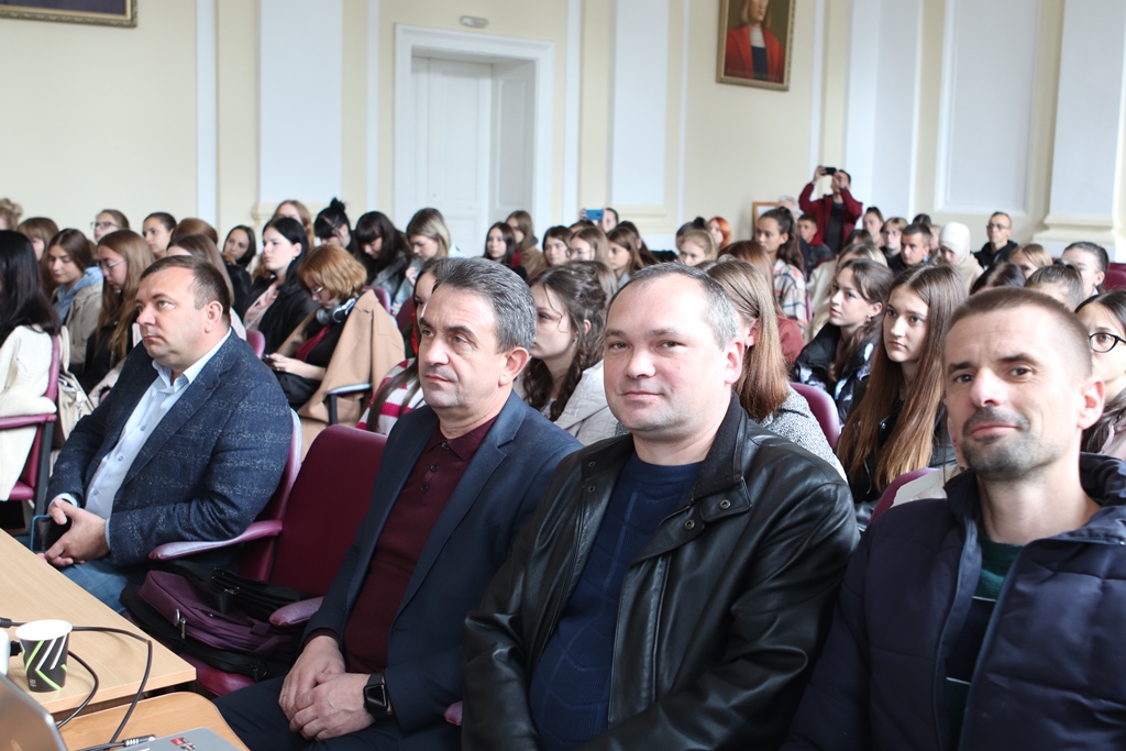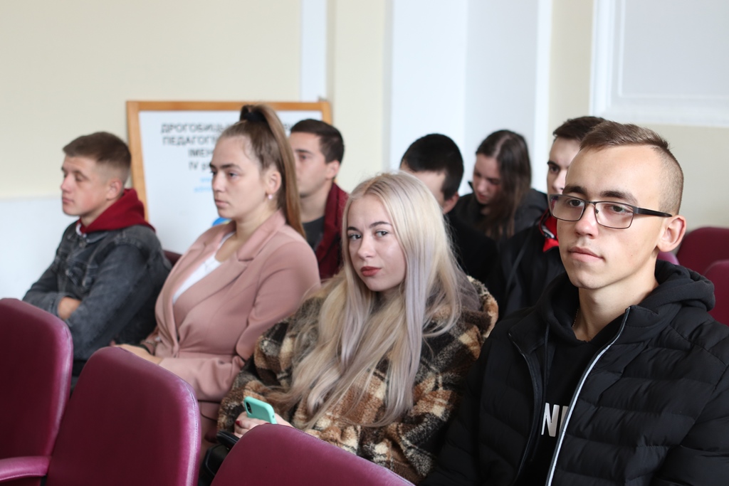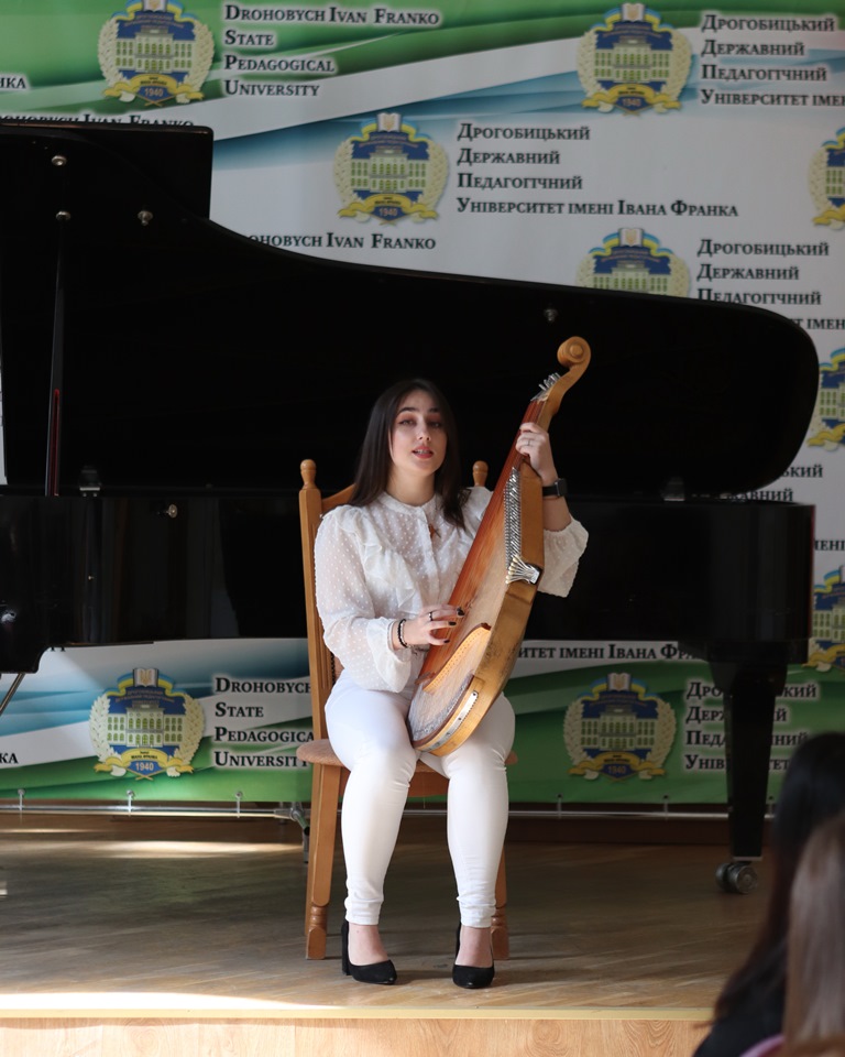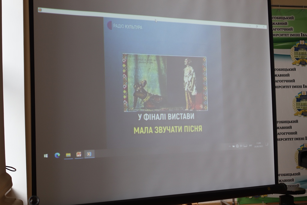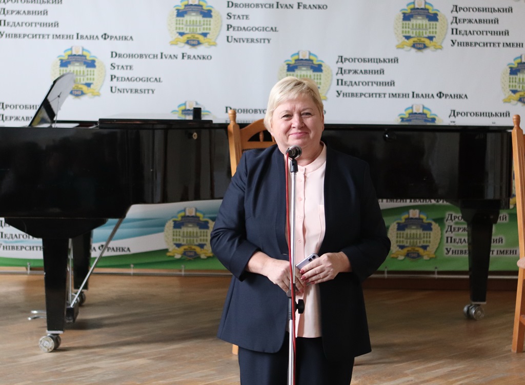 20 вересня 2022 року в актовій залі головного корпусу Дрогобицького університету відбулася лекція-практикум доцентки кафедри музично-теоретичних дисциплін та інструментальної підготовки Наталії Сторонської на тему «Подолання мовної кризи засобами музичного мистецтва» для студентів першого курсу факультету початкової освіти та мистецтва. Спікерка окреслила актуальні проблеми української мови і мовного бар’єру, який особливо гостро відчутний в умовах російсько-української війни. Було проаналізовано та продемонстровано патріотичну цілеспрямованість через виконання українського пісенного продукту представниками музичної сфери України і зарубіжжя на професійному та аматорському рівнях.