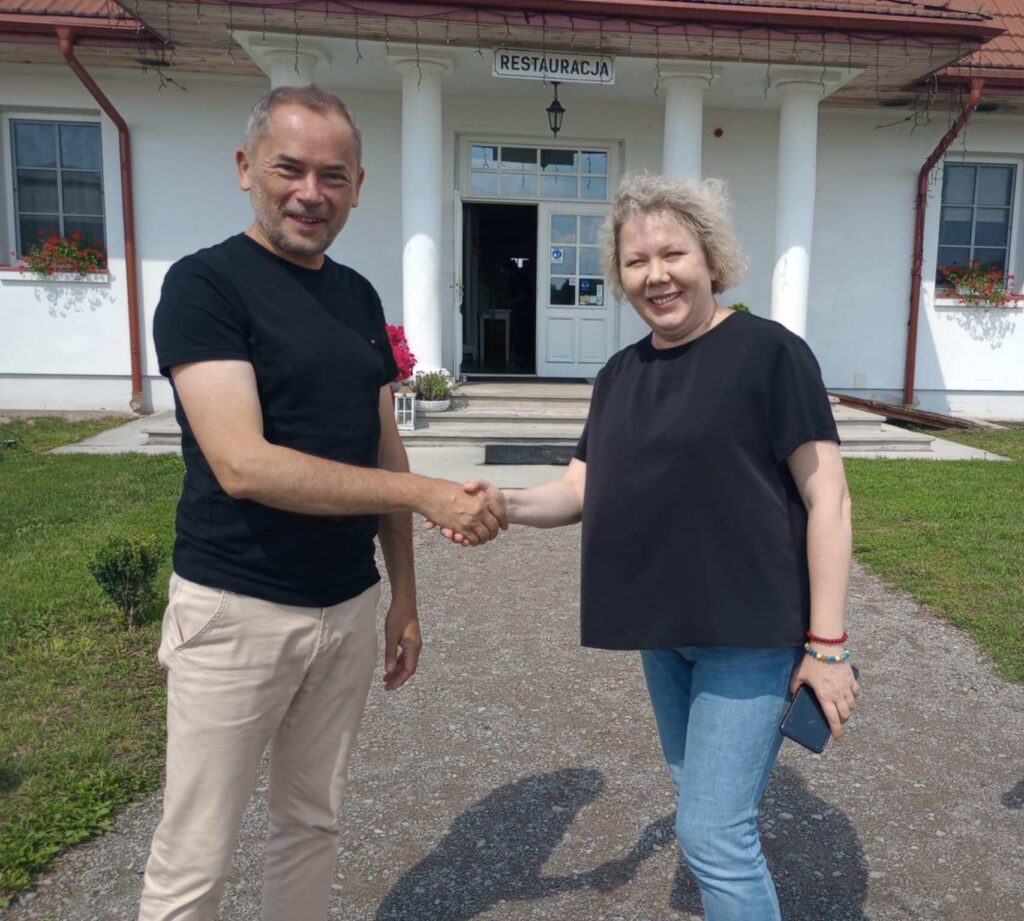 Серед липневих плодів партнерства з Товариством Фестиваль Бруно Шульца – ініційована його головою Ґжеґожем Юзефчуком, почесним доктором Дрогобицького державного педагогічного університету імені Івана Франка, спільна участь з керівницею Полоністичного центру Вірою Меньок у щорічному Фестивалі Спадщини Кресів. Цьогоріч від 18 липня до 3 серпня тривала двадцять перша едиція цього фестивалю, організаторами якого є Ґміна Любачів та Підкарпатське Воєводство (див. сайт фестивалю: https://festiwalkresow.pl). Варто наголосити, що історична ідіома «креси», вжита у назві фестивалю, трактується організаторами поза ідеологічно-політичним контекстом, сприймається й презентується у властивому культурному дискурсі українсько-польського пограниччя, позаяк терени фестивалю – це головно місцевості Любачівщини, де, як і в Дрогобичі, історично переплелися українська, польська та єврейська культури, що і є ключовою інтенцією Фестивалю Спадщини Кресів, його культурною місією. Цю місію глибоко й різнобічно розуміє, відроджує й утілює у життя війт Ґміни Любачів Вєслав Капель. Саме йому місцевість Башня Дольна й загалом Любачівщина завдячують блискучою реалізацією багатьох непересічних ініціатив, серед яких справжня астрономічна обсерваторія (див.: https://obserwatoriumtymce.pl), музей парового локомотива й галерея залізниці (див.: https://odkrywajroztocze.pl/atrakcje/muzeum,kolejnictwa,w,baszni,dolnej-1016), комплекс просто неба Кресова Осада з реконструйованими об’єктами старовинної дерев’яної архітектури, в яких відбуваються найрізноманітніші події, в тому числі Фестиваль Спадщини Кресів. Завдяки таким натхненним дієвцям як війт Вєслав Капель маємо наочні свідчення того, якими можуть бути результати непідробного локального патріотизму, плекання місця власної культурної ідентичності.