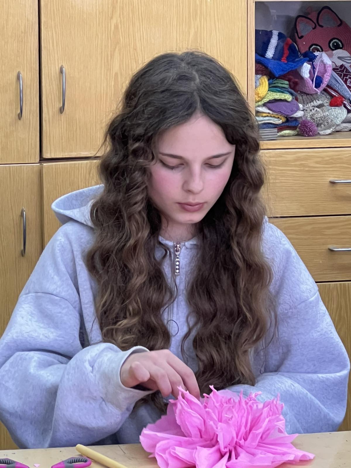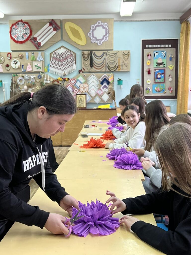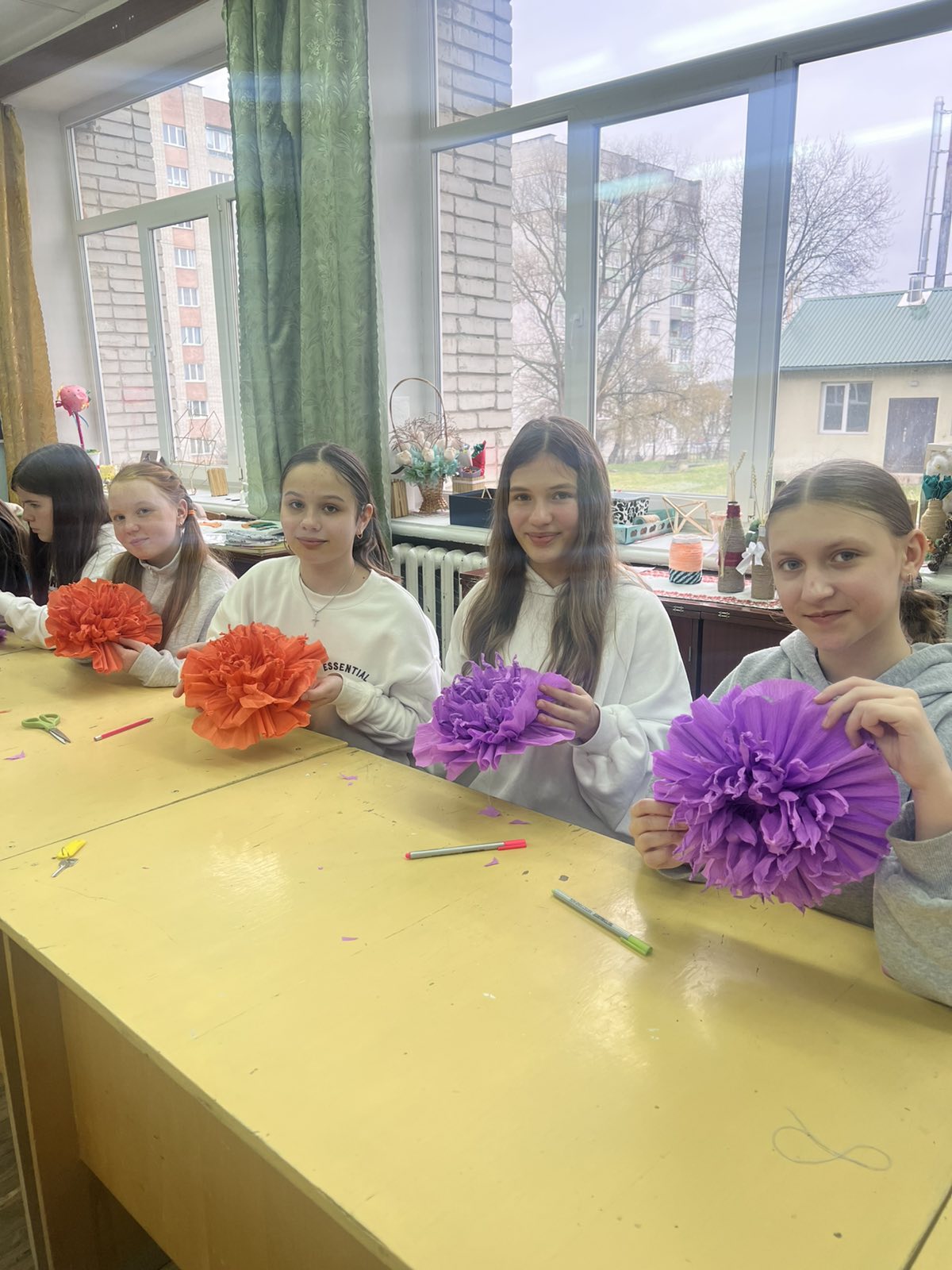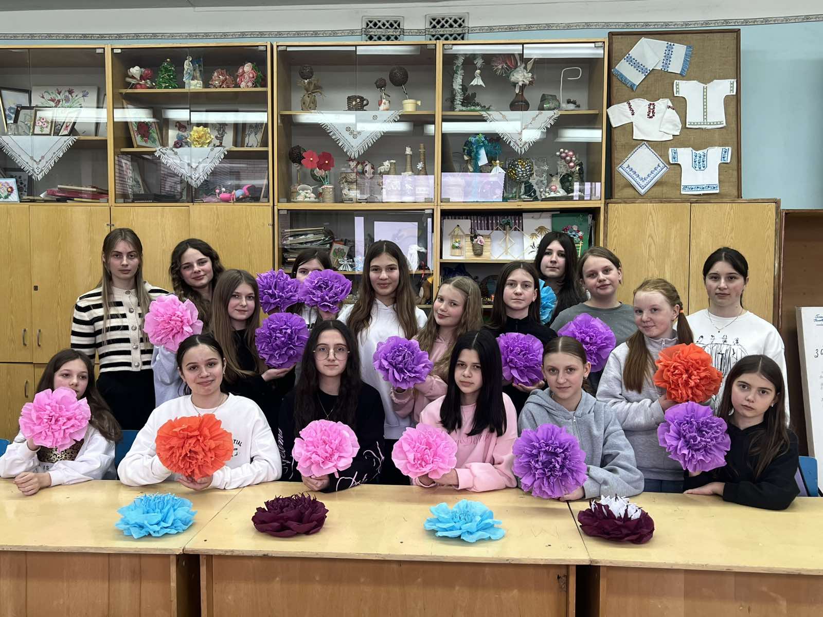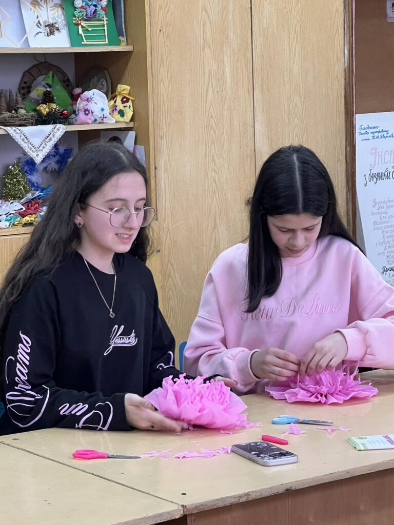 Організаторки – доцентка Галина Мельник, старша викладачка Галина Ліщинська-Кравець, студентки Аліна Добрянська й Соломія Скалич – створили теплу й дружню атмосферу, де кожен школяр міг розкрити власний творчий потенціал і відчути радість від результатів своєї праці. Впродовж заходу учні не просто спостерігали – вони активно долучалися до процесу: вчилися працювати з різноманітними матеріалами та інструментами, крок за кроком створюючи власні декоративні квіти. Майстер-клас допоміг учасникам відчути себе справжніми майстрами, поєднуючи творчість із практичними навичками, та відкрив нові грані можливостей для самовираження.