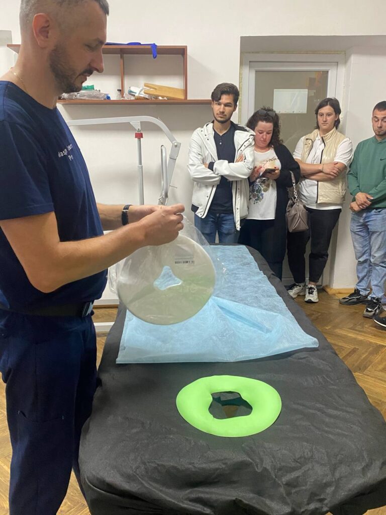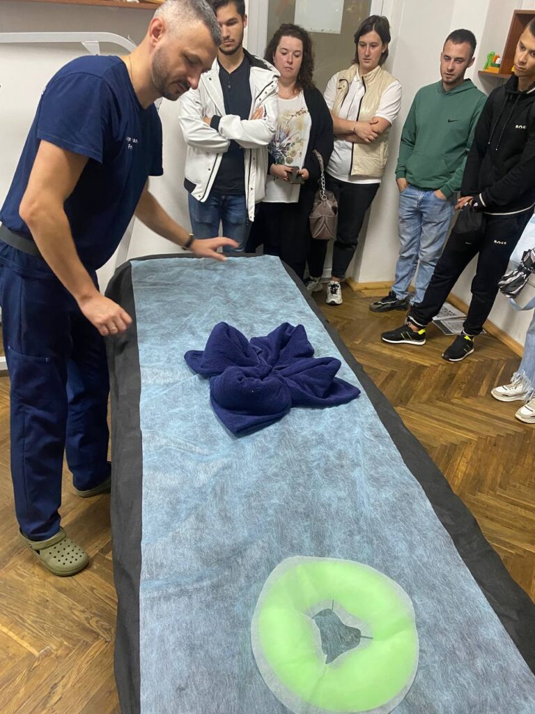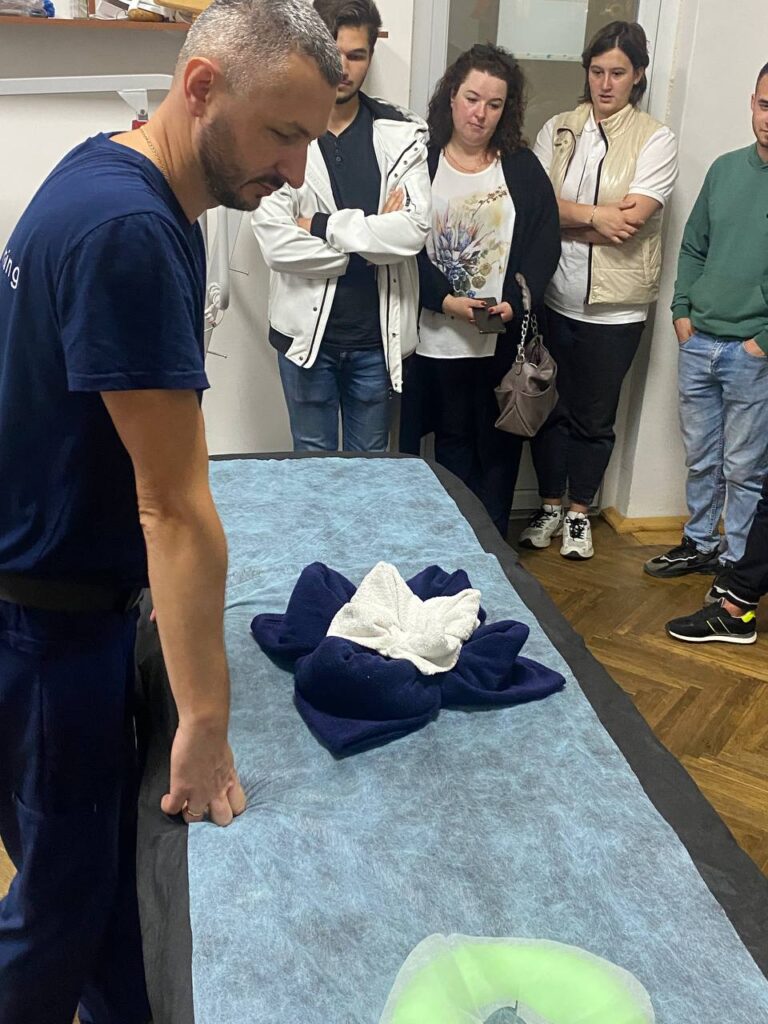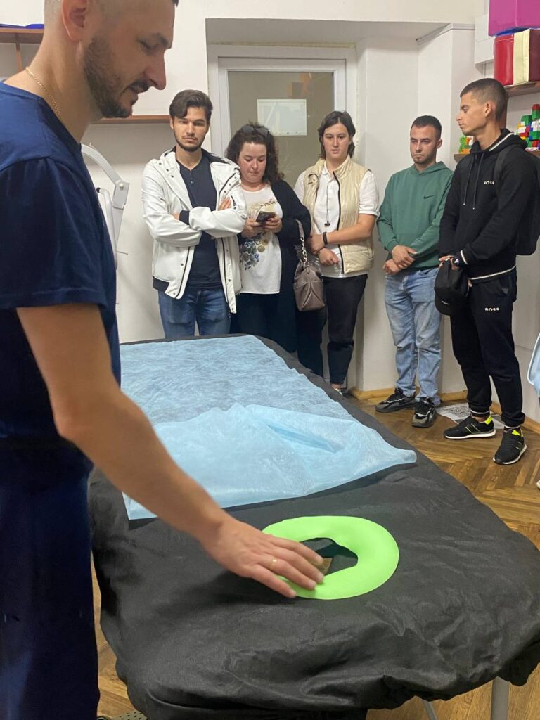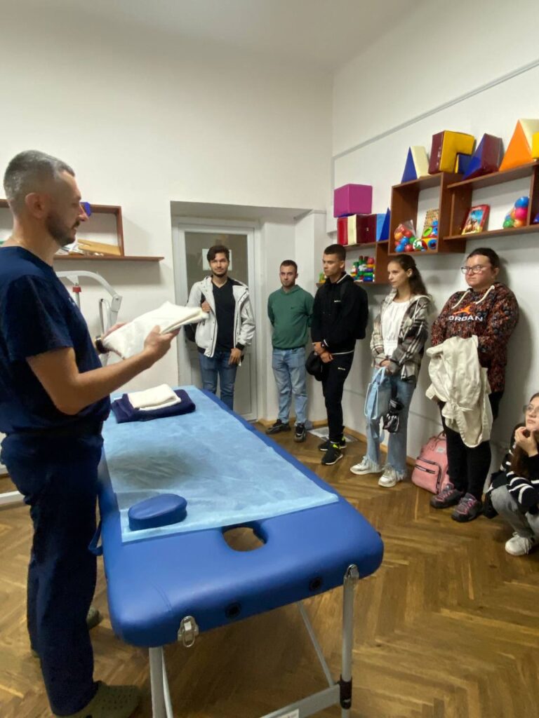 Майстер-клас з навчальної дисципліни «Масаж» провів Іван Прокопів – практикуючий масажист з освітою фізичного терапевта, ерготерапевта. Він ознайомив студентів з біомеханічними особливостями проведення масажу, що дозволить їм свідомо застосувати різноманітні техніки, запобігати травмам у пацієнтів, а також зберегти здоров’я самого масажиста. Під час майстер-класу студенти дізналися про правильне використання ваги, силу натиску та про інші нюанси, що забезпечують професійне та безпечне використання масажних технік.