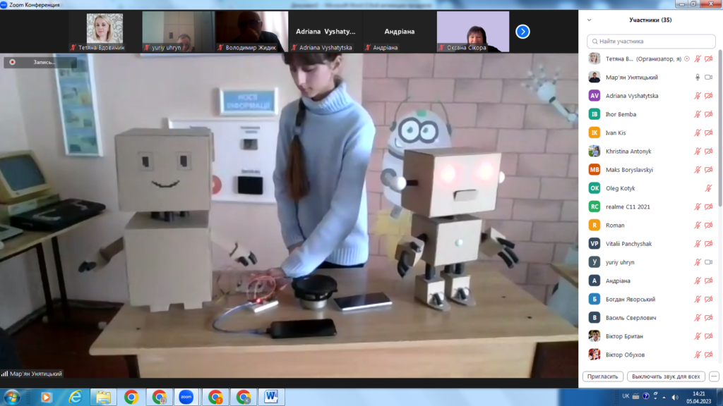 Сьогодні Мар’ян Романович і його учні Софія Тінишин, Ірина Винар та Роман Видиш – гості факультету фізики, математики, економіки та інноваційних технологій. Присутні майже пів сотні учасників онлайн-зустрічі із задоволенням познайомились з основами робототехніки, матеріальною базою, симулятором та «живими» моделями роботів. Бажаючі змогли задати запитання, які їх цікавили, і отримали грунтовні відповіді. Обидві сторони залишились задоволені знайомством і виразили надію на подальші зустрічі, але вже у форматі живого спілкування.