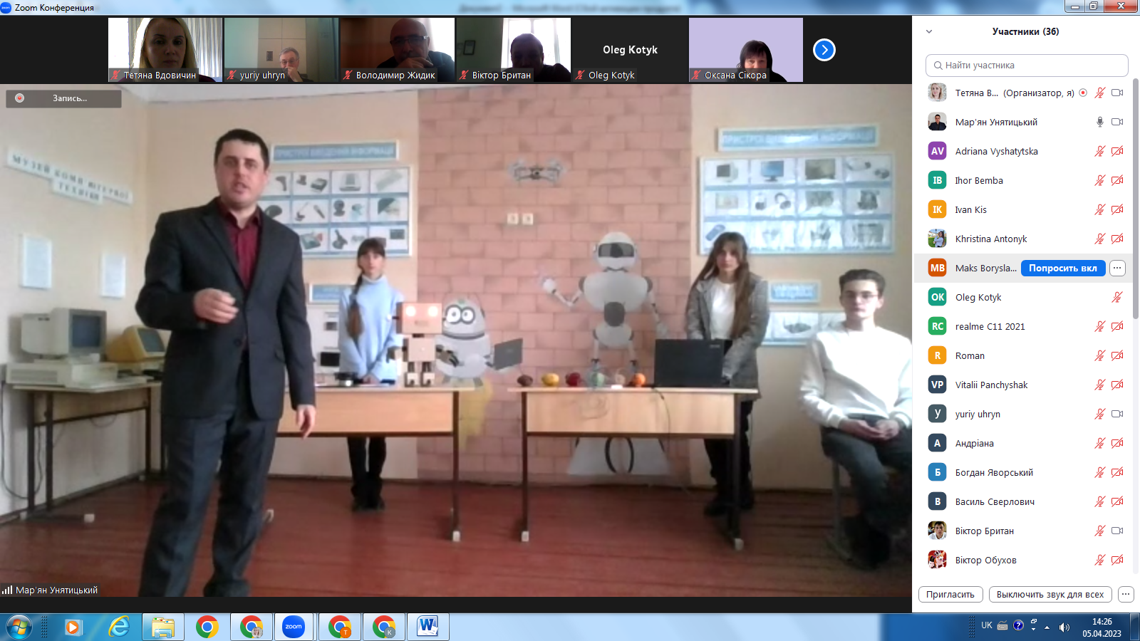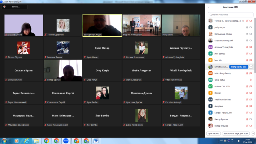 5 квітня 2023 року зі студентами освітніх програм «Середня освіта (Інформатика, математика)» та «Середня освіта (Інформатика)» на платформі ZOOM відбулася чергова із запланованої серії онлайн зустрічей. Цього разу з вчителем інформатики Мар’яном Унятицьким. До майстер-класу долучилися студенти й інших освітніх програм.