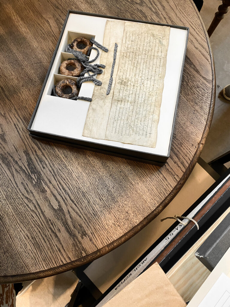 Після вступної лекції ми разом з Олегом Однороженком і Наталією Білоус відвідали бібліотеку Академії наук Литви та мали змогу побачити на власні очі та навіть доторкнутися до рукописних історичних джерел часів Великого князівства Литовського.