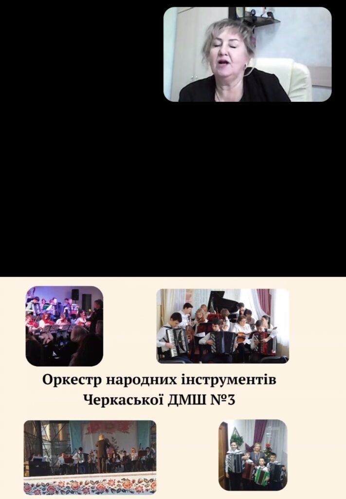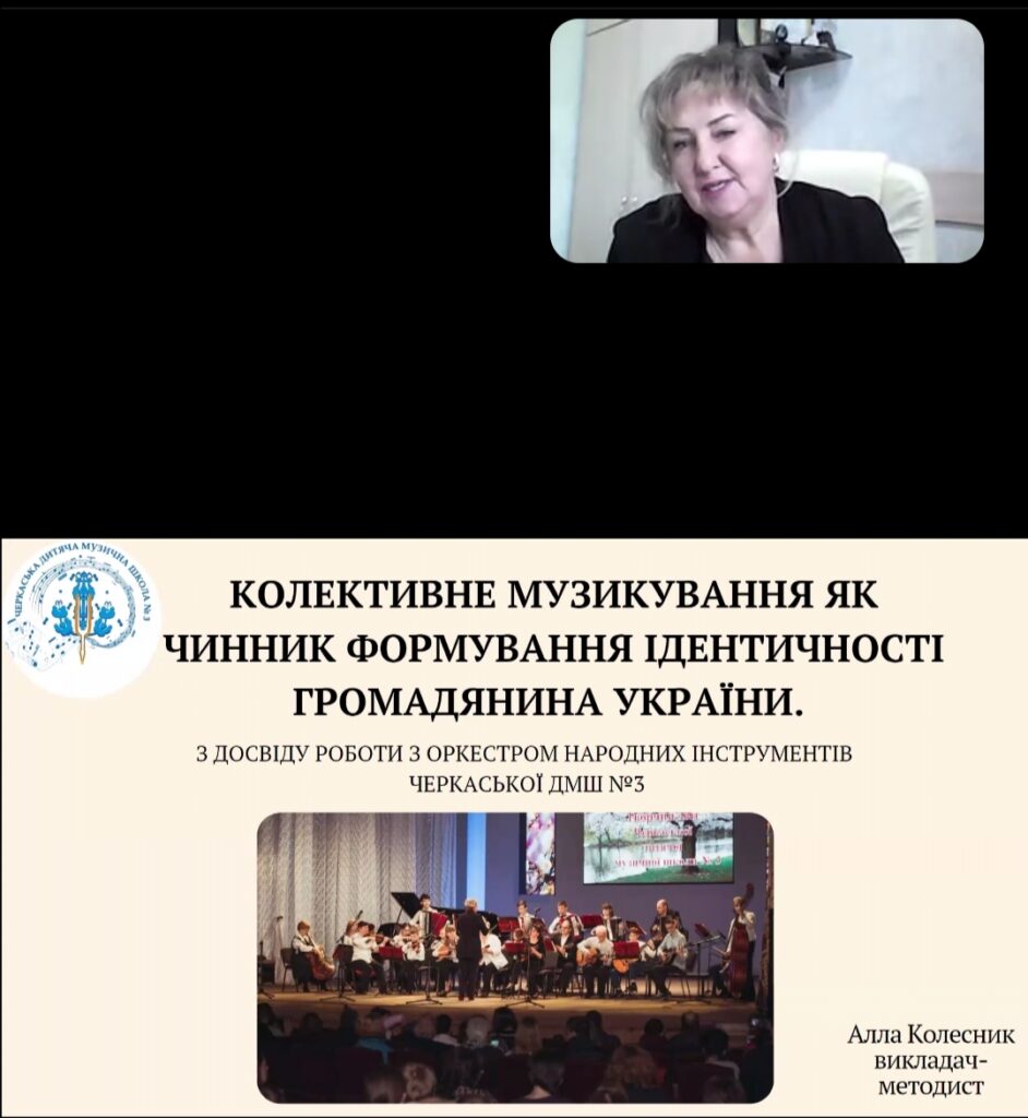 Горизонти колективного музикування як чинника формування ідентичності громадянина України на прикладі власного досвіду роботи з оркестром народних інструментів представила викладачка-методистка Черкаської дитячої музичної школи № 3 Алла Колесник.