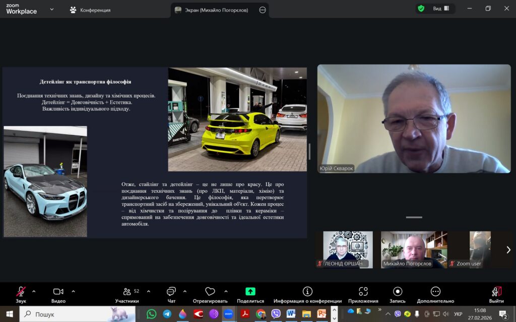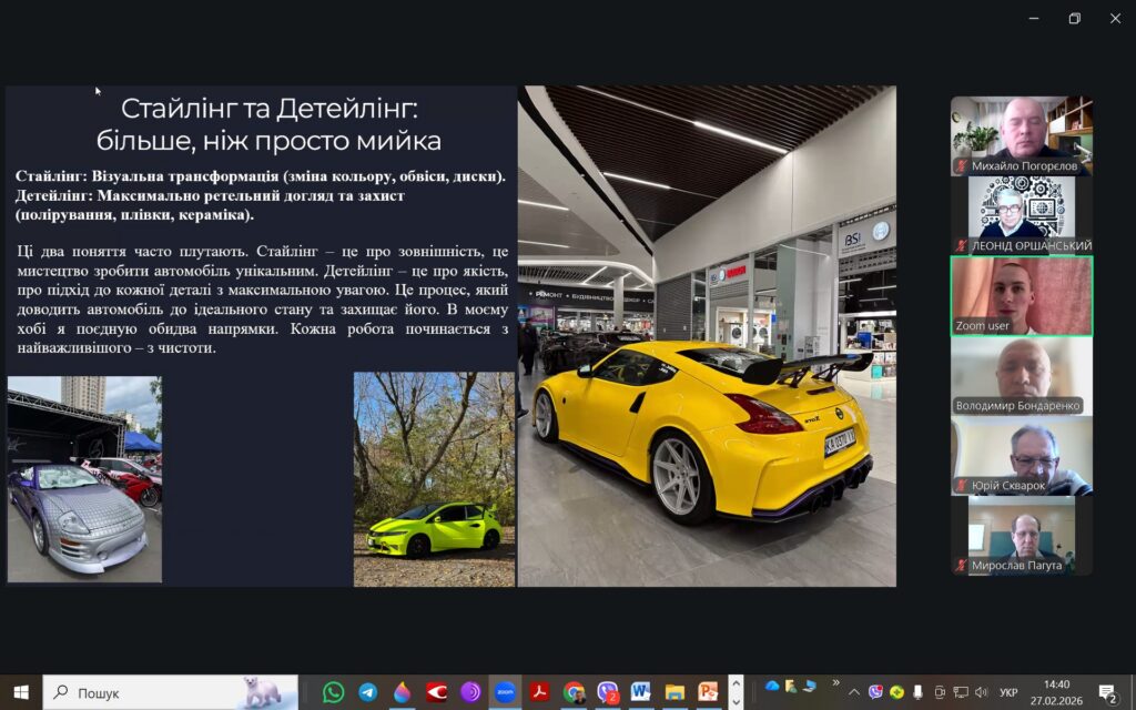У межах розвитку міжуніверситетської співпраці 27 лютого відбувся цікавий науково-практичний захід – лекція-диспут на тему «Детейлінг та стайлінг: комплексний догляд і зміна дизайну автомобіля». Захід було організовано у партнерстві між кафедрами технологічної та професійної освіти ДВНЗ «Донбаський державний педагогічний університет», Дрогобицького державного педагогічного університету імені Івана Франка та Криворізького державного педагогічного університету. Участь у заході взяло понад 60 здобувачів цих закладів вищої освіти, які навчаються за спеціальністю А5.38 Професійна освіта (Транспорт). Дрогобицький університет представляла потужна команда на чолі з проректором з науково-педагогічної роботи та інформатизації Юрієм Скварком і завідувачем кафедри Леонідом Оршанським.