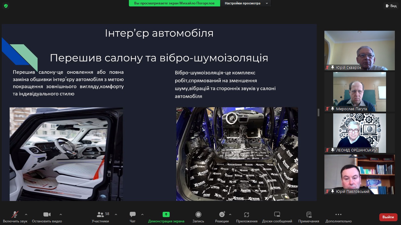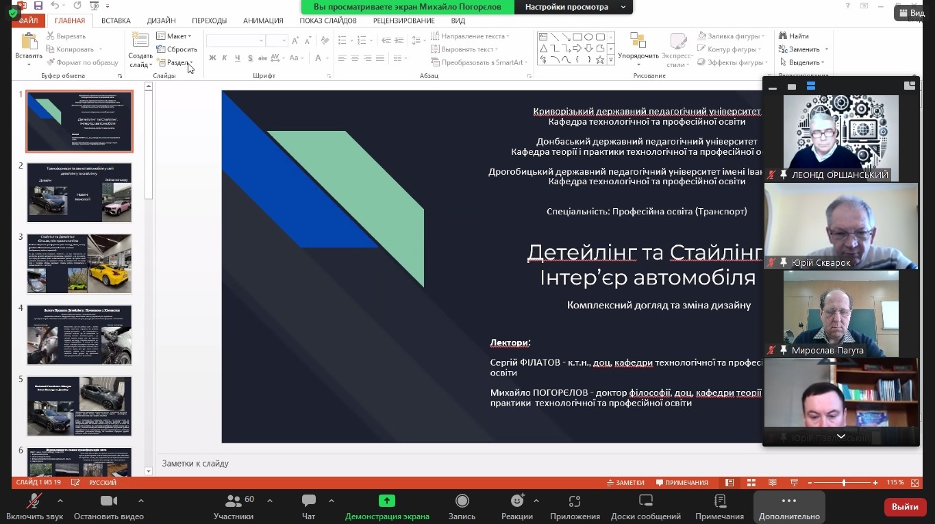 У межах розвитку міжуніверситетської співпраці 27 лютого відбувся цікавий науково-практичний захід – лекція-диспут на тему «Детейлінг та стайлінг: комплексний догляд і зміна дизайну автомобіля». Захід було організовано у партнерстві між кафедрами технологічної та професійної освіти ДВНЗ «Донбаський державний педагогічний університет», Дрогобицького державного педагогічного університету імені Івана Франка та Криворізького державного педагогічного університету. Участь у заході взяло понад 60 здобувачів цих закладів вищої освіти, які навчаються за спеціальністю А5.38 Професійна освіта (Транспорт). Дрогобицький університет представляла потужна команда на чолі з проректором з науково-педагогічної роботи та інформатизації Юрієм Скварком і завідувачем кафедри Леонідом Оршанським.
