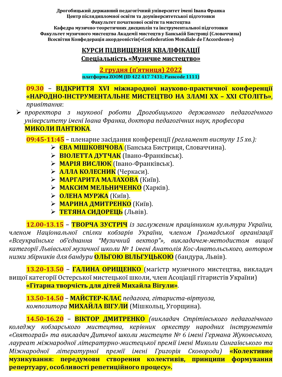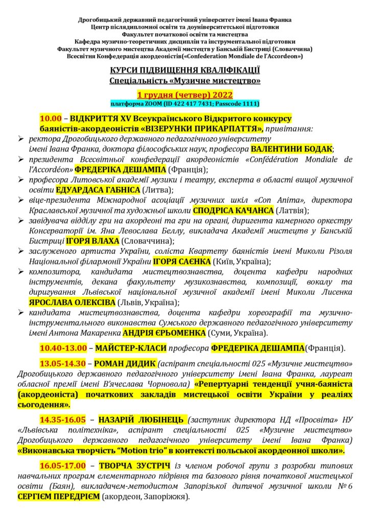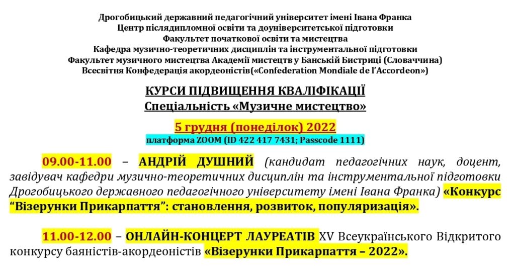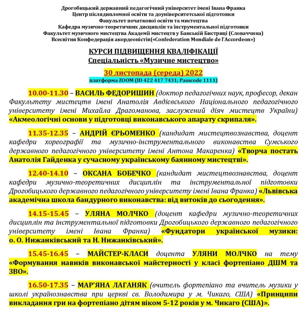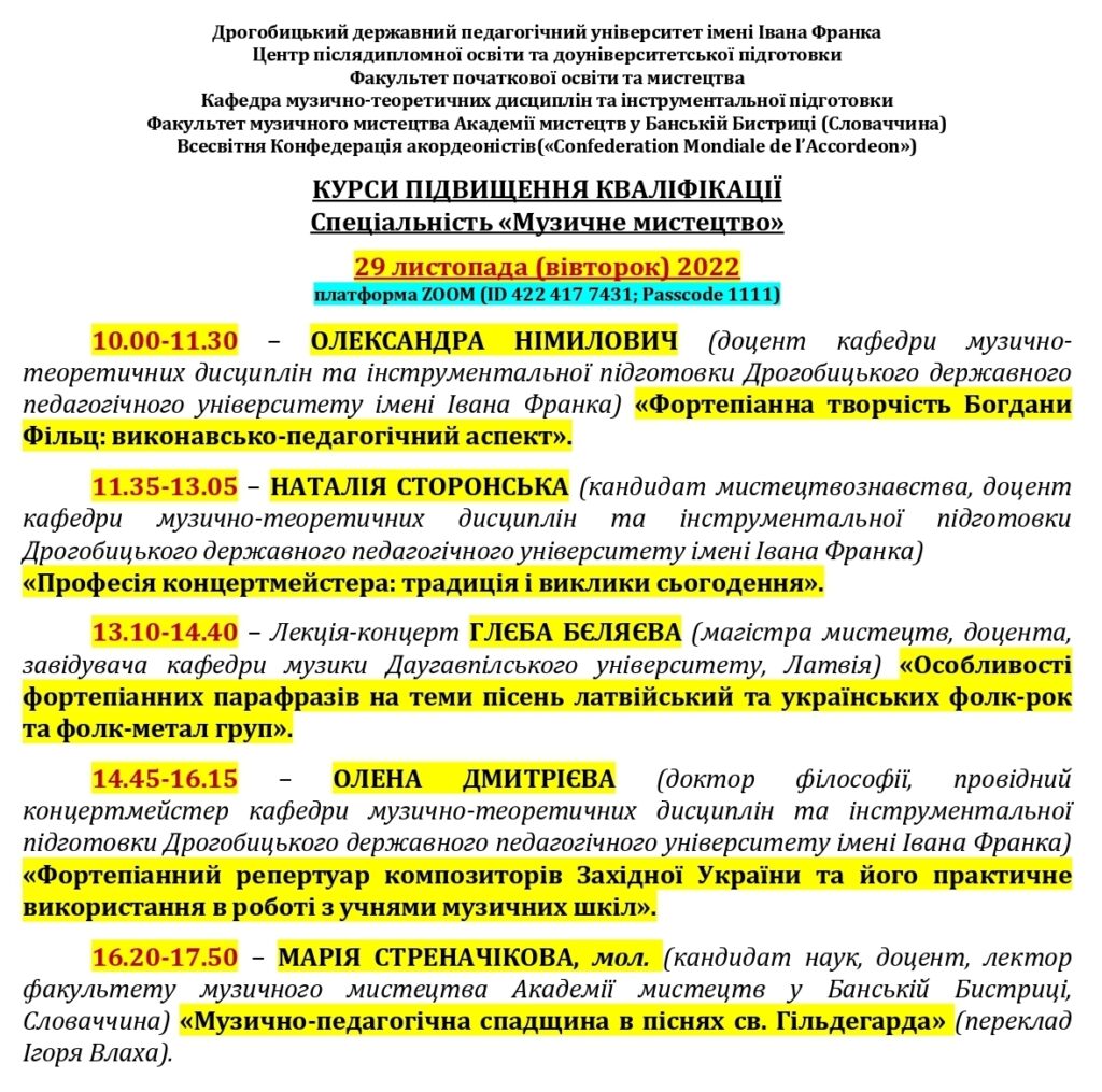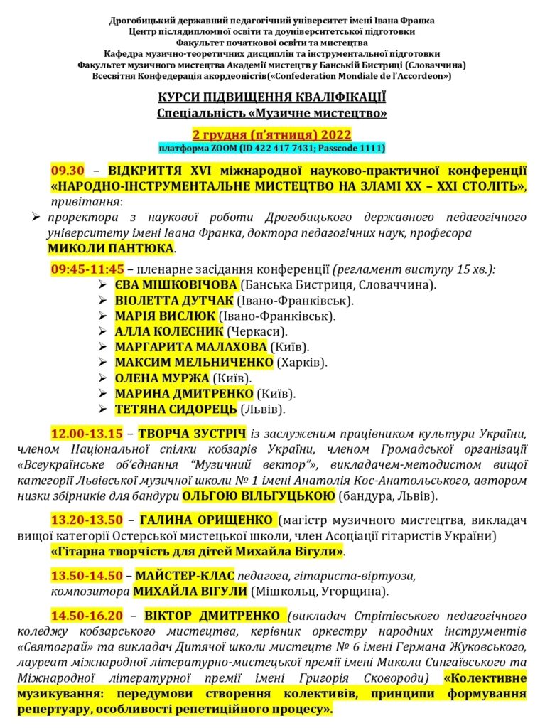 Мистецький форум із міжнародною участю кафедри музично-теоретичних дисциплін та інструментальної підготовки.