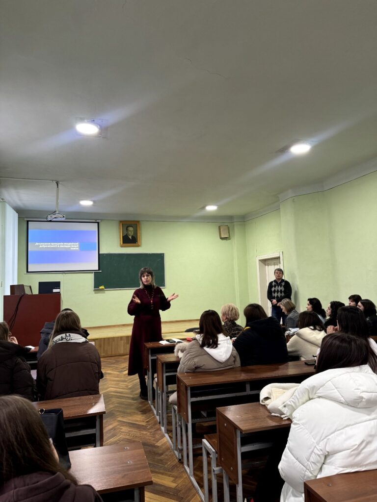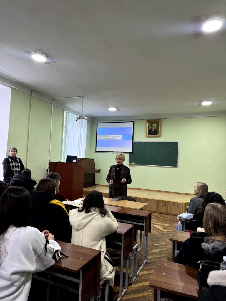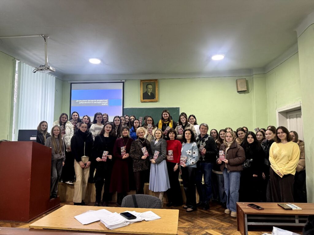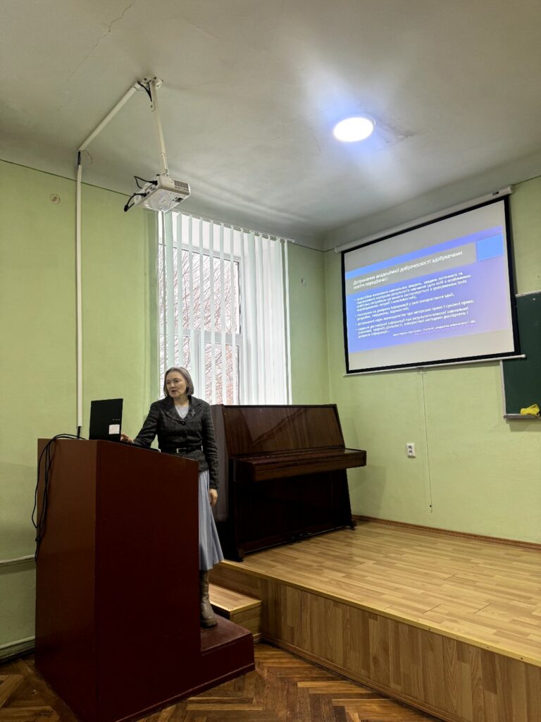 Академічна доброчесність є основою довіри між здобувачами освіти та закладом освіти. Вона передбачає самостійність у навчанні, чесність під час оцінювання та повагу до інтелектуальної власності інших. Дотримання принципів доброчесності формує професійну відповідальність і репутацію майбутнього фахівця. Свідомий вибір чесної праці сьогодні є запорукою якісної освіти й успіху. Тож заступниця декана з навчальної та виховної роботи Руслана Манько не тільки продемонструвала і прокоментувала відеослайди про академічну доброчесність, але й закцентувала на важливості цього питання під час проходження педагогічної практики.