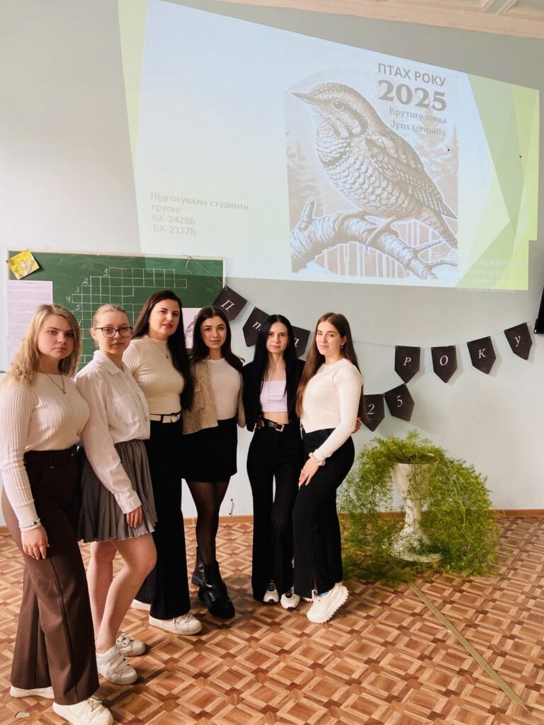 3 квітня 2025 року на факультеті здоров’я людини та природничих наук Дрогобицького державного педагогічного університету імені Івана Франка доцентом, кандидатом біологічних наук Світланою Волошанською та старшим викладачем, кандидатом педагогічних наук Сузанною Волошин проведено науково-пізнавальний захід «Птах року – 2025 в Україні» спільно зі студентами першого курсу спеціальності 014 СО (Біологія та здоров’я людини, хімія), які згідно з навчальним планом вивчають навчальну дисципліну «Зоологія. Хордові». У заході взяли участь учні 7 класів Дрогобицького ліцею №16 імені Юрія Дрогобича разом із учителем біології, учителем-методистом Лілією Герасим, яка здійснює освітній процес у цьому ЗЗСО за науково-педагогічним проєктом «Інтелект України».