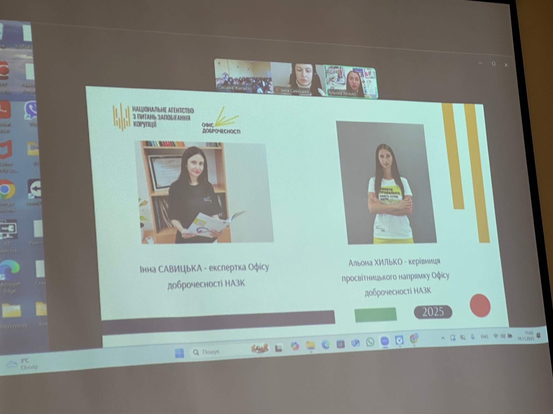 Під час семінару спікерки розкрили сучасні підходи до запобігання корупції у сфері освіти, важливість формування доброчесного освітнього середовища та практичні інструменти реагування на корупційні ризики.