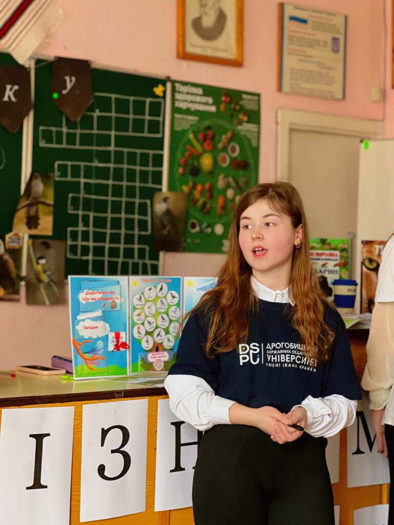 Майбутні учителі біології, основ здоровʼя та хімії представили наукову інформацію про найбільш поширені види осілих та мігруючих птахів, найменшого птаха України – королика (золотомушку), птаха року 2026 – лиску звичайну. Одночасно школярі активно долучилися до розвʼязання інтерактивних творчих завдань орнітологічної тематики. І, звичайно, команда переможців, а також активні учасники конкурсу отримали подарунки від університету. У підсумку усі учасники зустрічі залишилися задоволені – і студенти, які побачили результат своєї праці, і школярі, які були зацікавлені пізнавати нове.