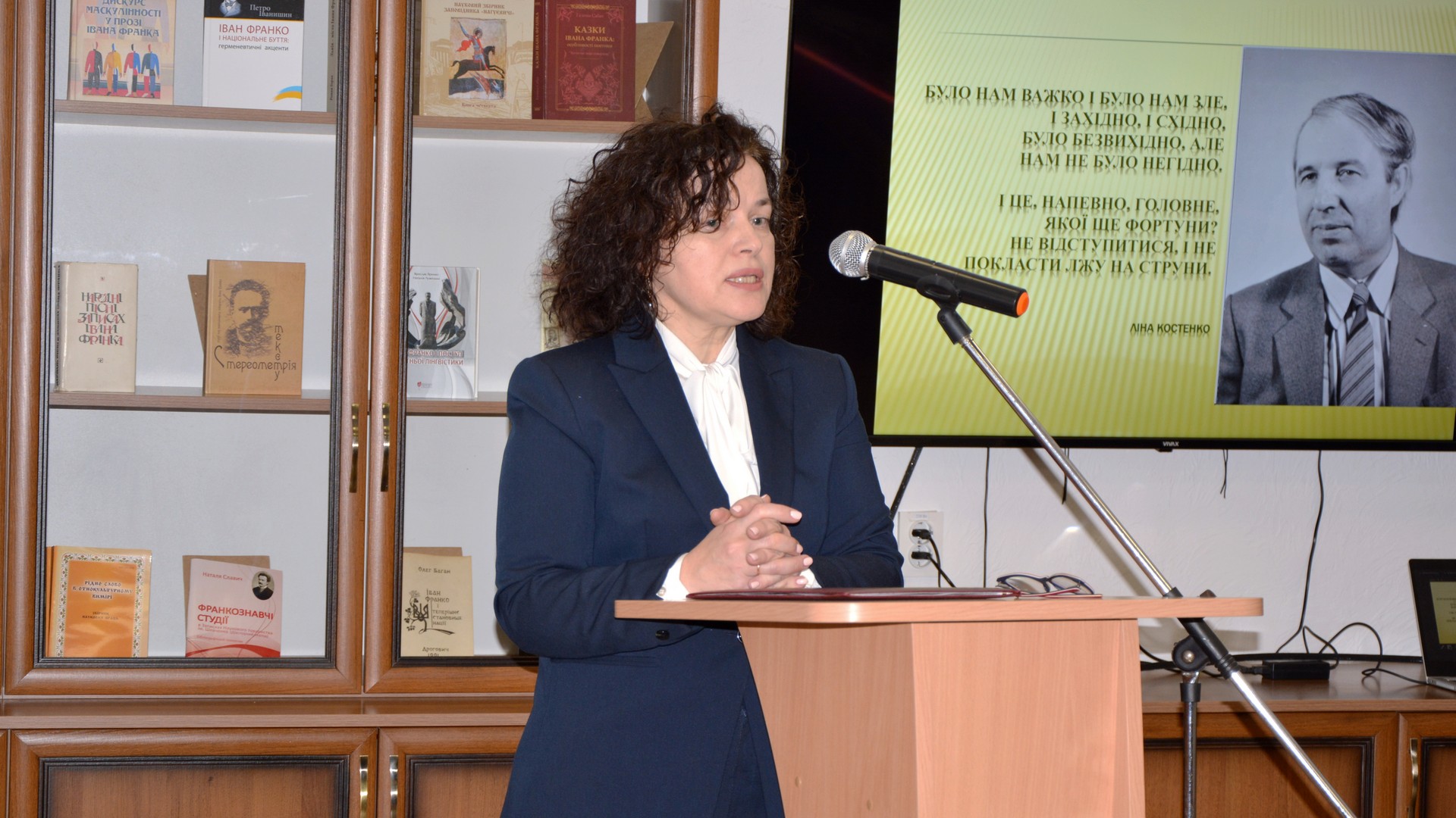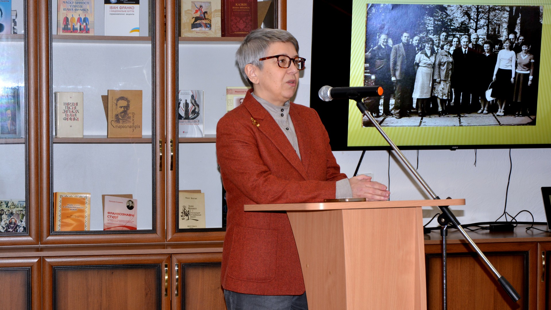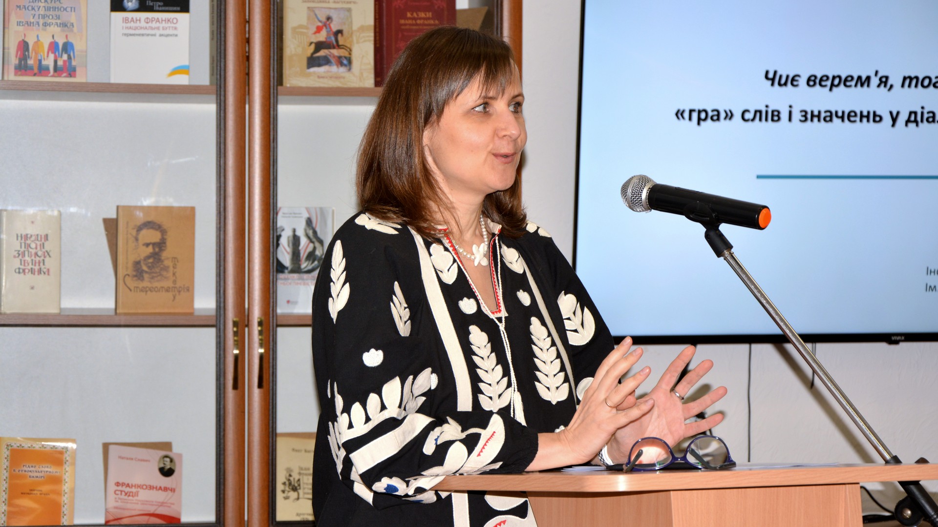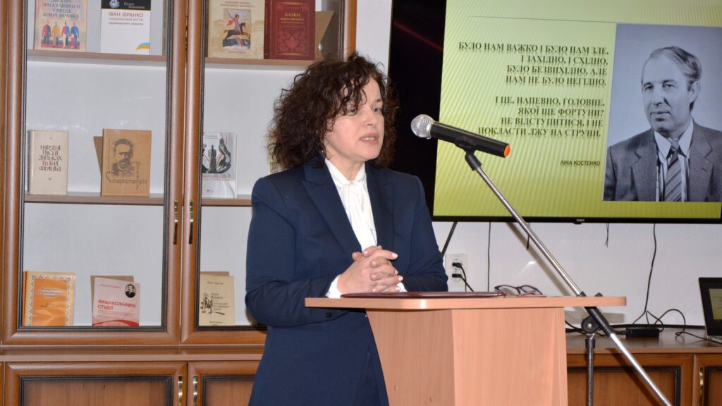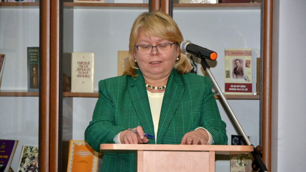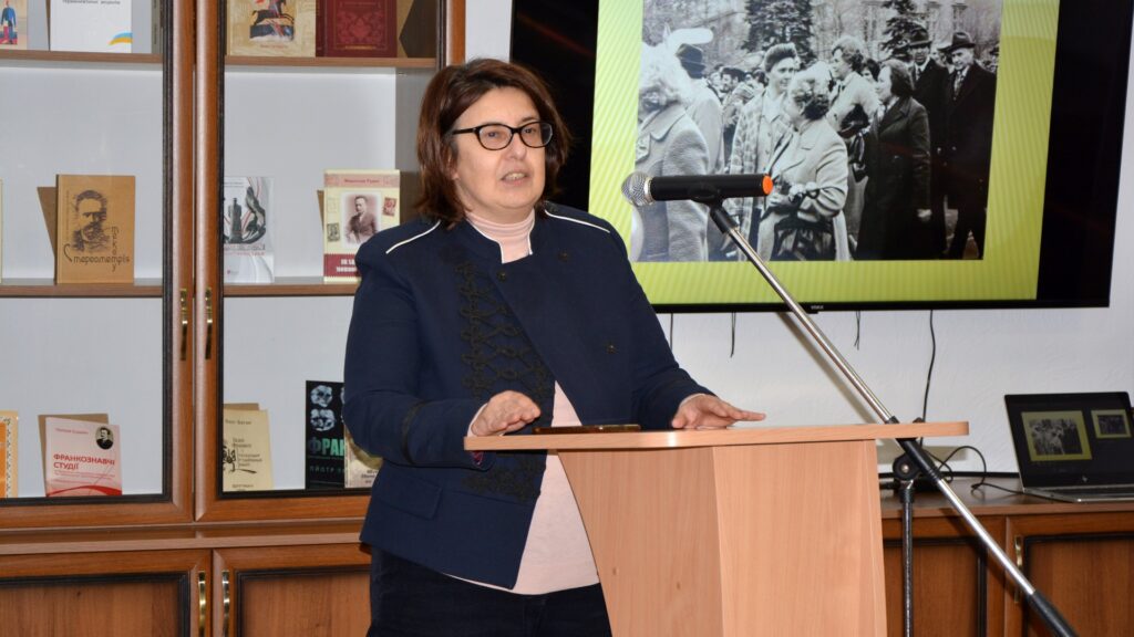 З доповіддю «150-річчя НТШ, історія створення проєкту «Мовознавча комісія НТШ. Ювілеї. Спадщина» виступила голова Мовознавчої комісії НТШ імені Шевченка, д. філол. наук, ст. наук. співробітниця відділу української мови Інституту українознавстваімені Івана Крип’якевича НАН України Ганна Дидик-Меуш.
