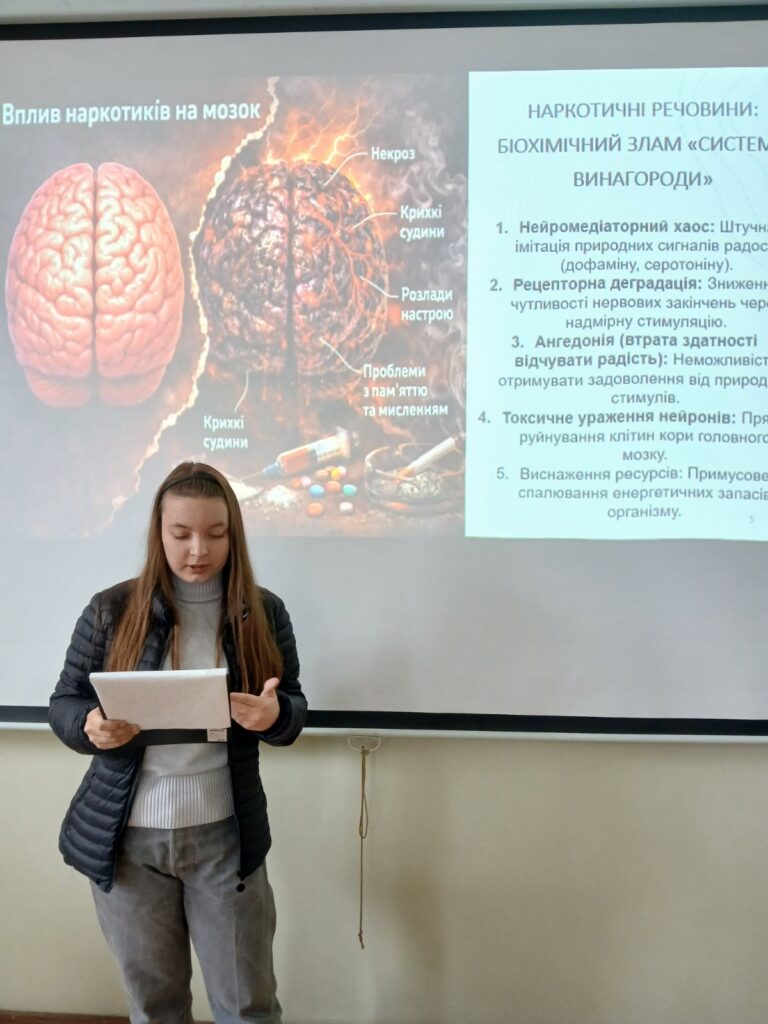 У межах тижня здоров’я, організованого на факультеті здоров’я людини та природничих наук, доцентки кафедри медико-біологічних дисциплін, географії та екології Галина Ковальчук та Оксана Лупак під час навчальних занять серед першокурсників факультетів університету проводили тематичну акцію «Цінуймо здоров’я замолоду!». Під час занять студенти презентували цікаві та пізнавальні доповіді, що стосувалися впливу різних чинників на здоров’я та запобігання захворюванням.