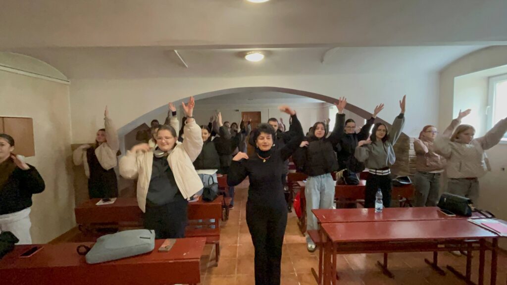 Під час навчальних занять найкращим способом зняття навантаження на опорно-руховий апарат, активізації уваги та підвищення працездатності студентів є проведення валеохвилинок. Упродовж тижня студенти І-ІІІ курсів університету активно проводили в аудиторії валеохвилинки для відновлення «Зроби паузу – обери здоров’я». Такі валеохвилинки майбутні вчителі можуть проводити з учнями під час уроків, формуючи у них здоров’язбережувальну компетентність.