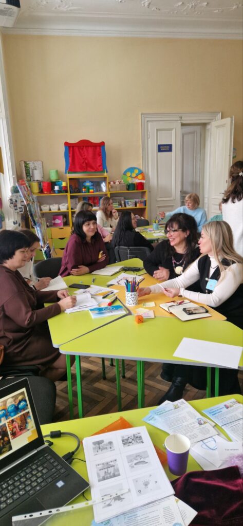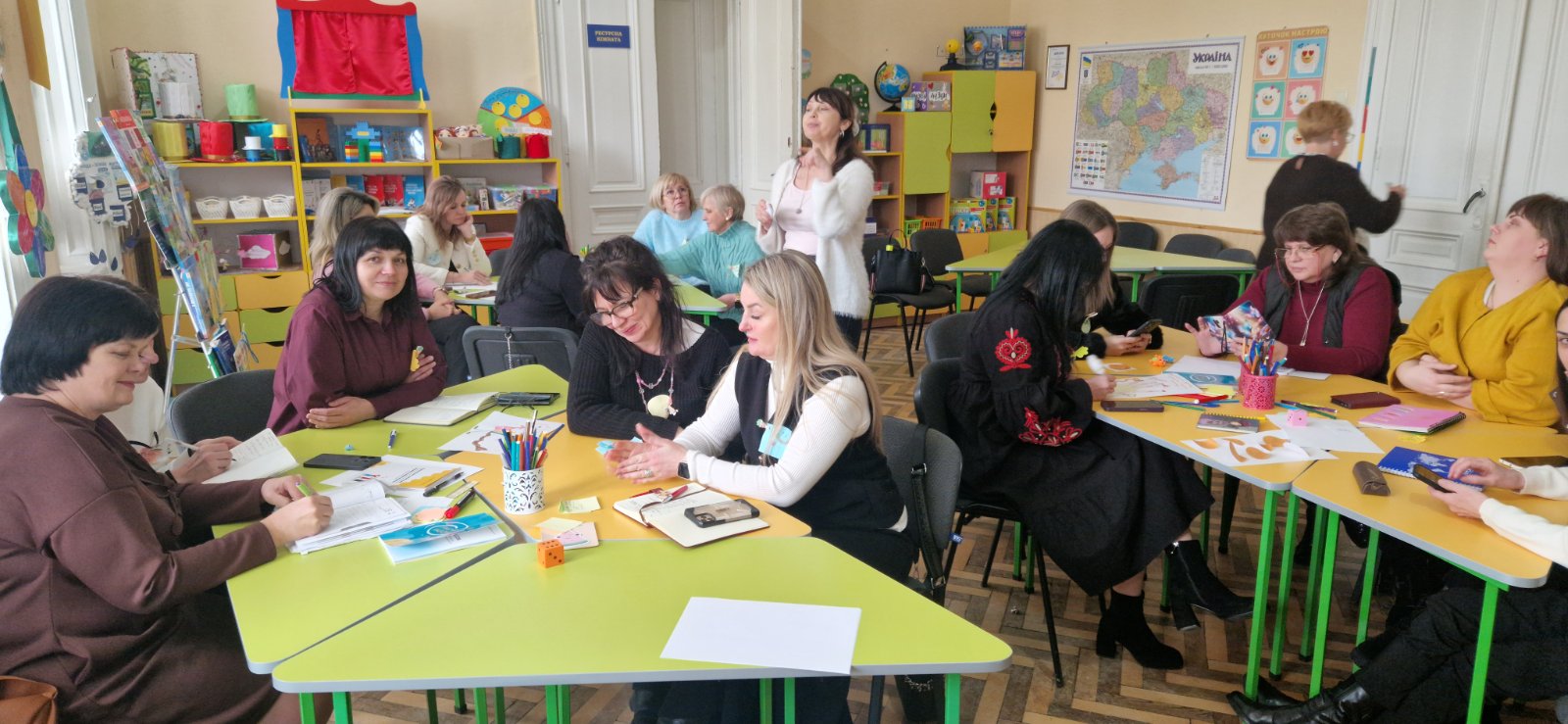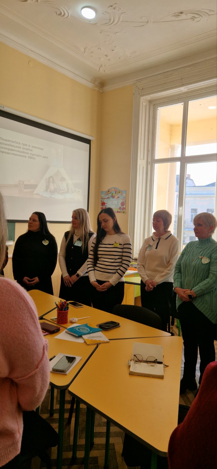 Інтерактивні вправи, колективні творчі завдання, рандомні поділи у взаємодії розширювали навички соціальної компетентності учасників, додавали наснаги до професійного вдосконалення. Педагоги занурилися в атмосферу гри й відчули важливість правильної організації розвивального середовища для дитячого світосприймання.