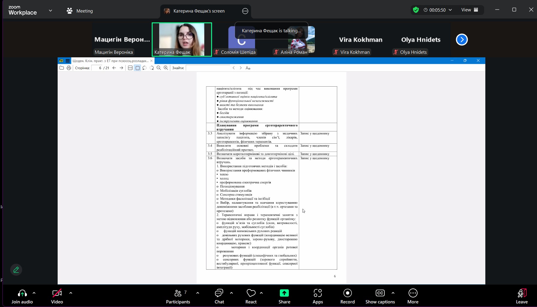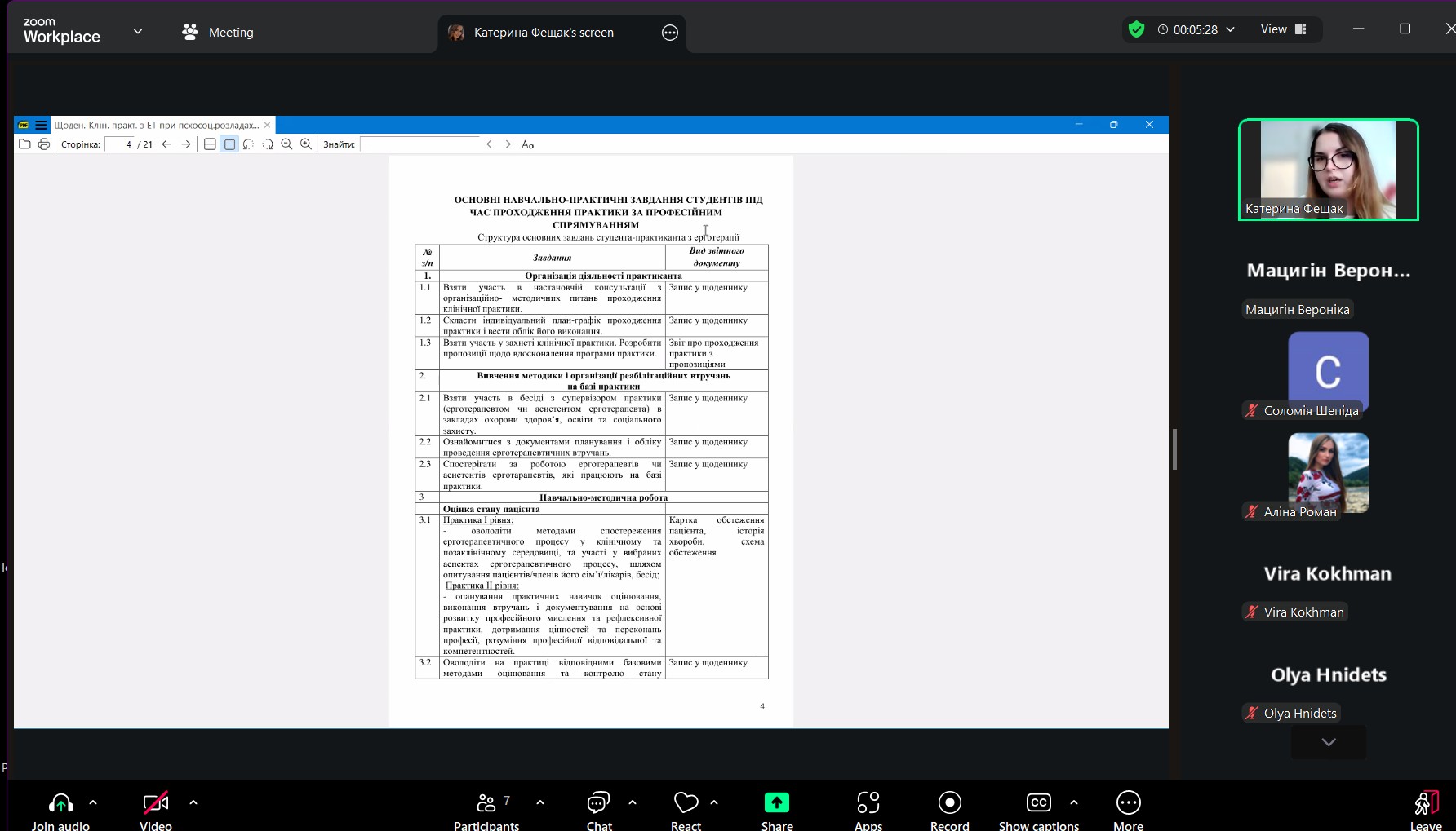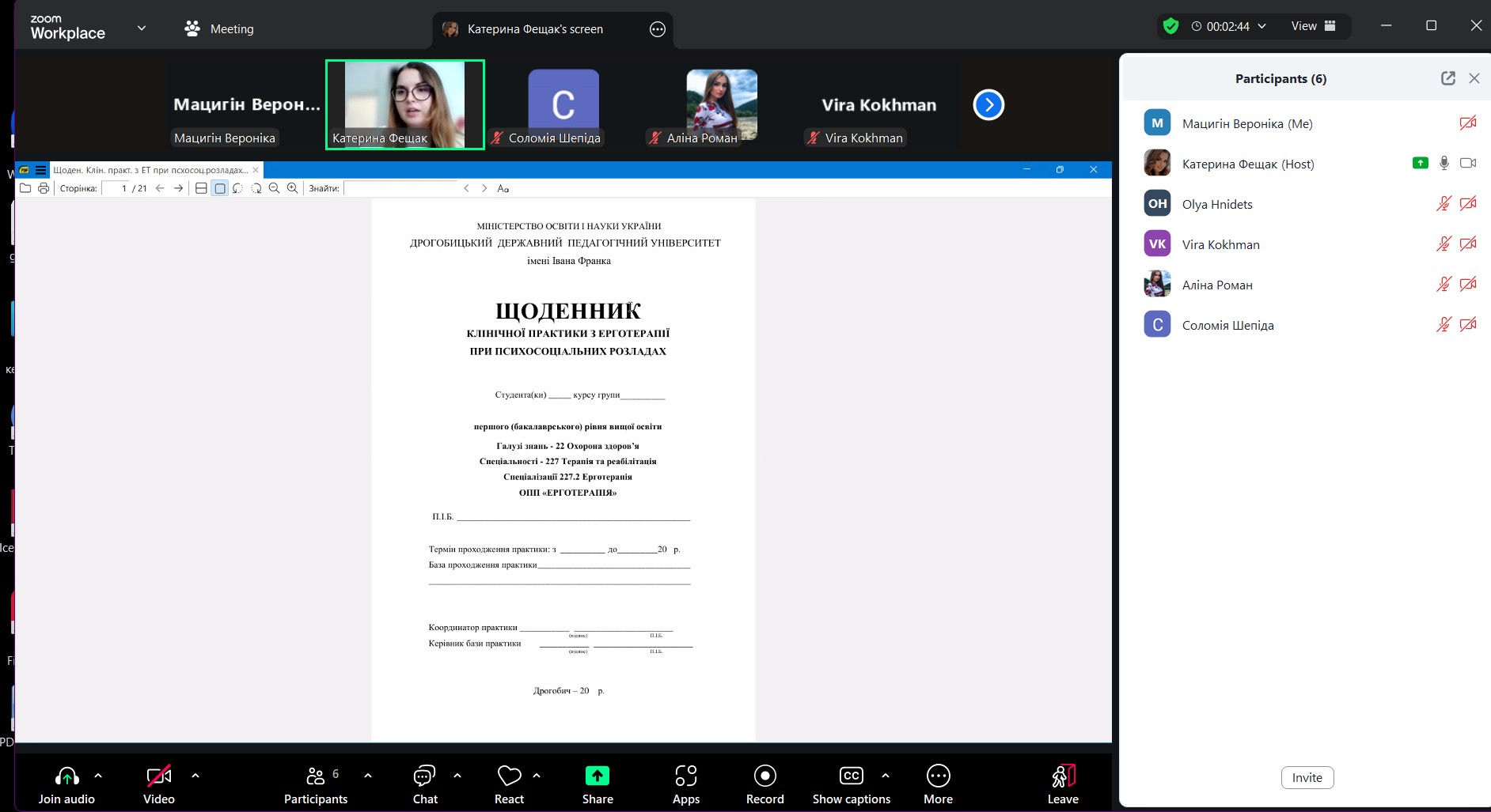 Крім того, значну частину часу присвятили структурі щоденника клінічної практики — основного документа, що відображає роботу студента. Важливо, щоб цей щоденник вівся коректно та інформативно. Було розглянуто принципи та критерії оцінювання роботи практикантів. Єдиний підхід до оцінювання є запорукою об’єктивності та чесності, що дозволяє супервізорам справедливо оцінити професійні компетентності майбутніх фізичних та ерготерапевтів.
