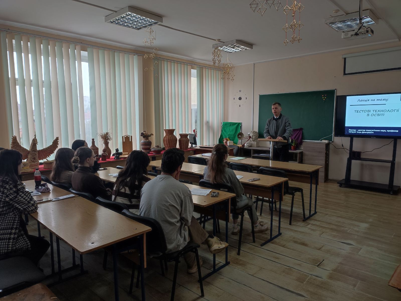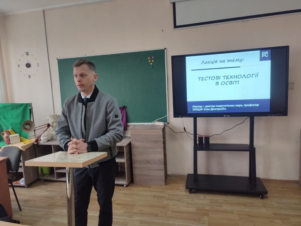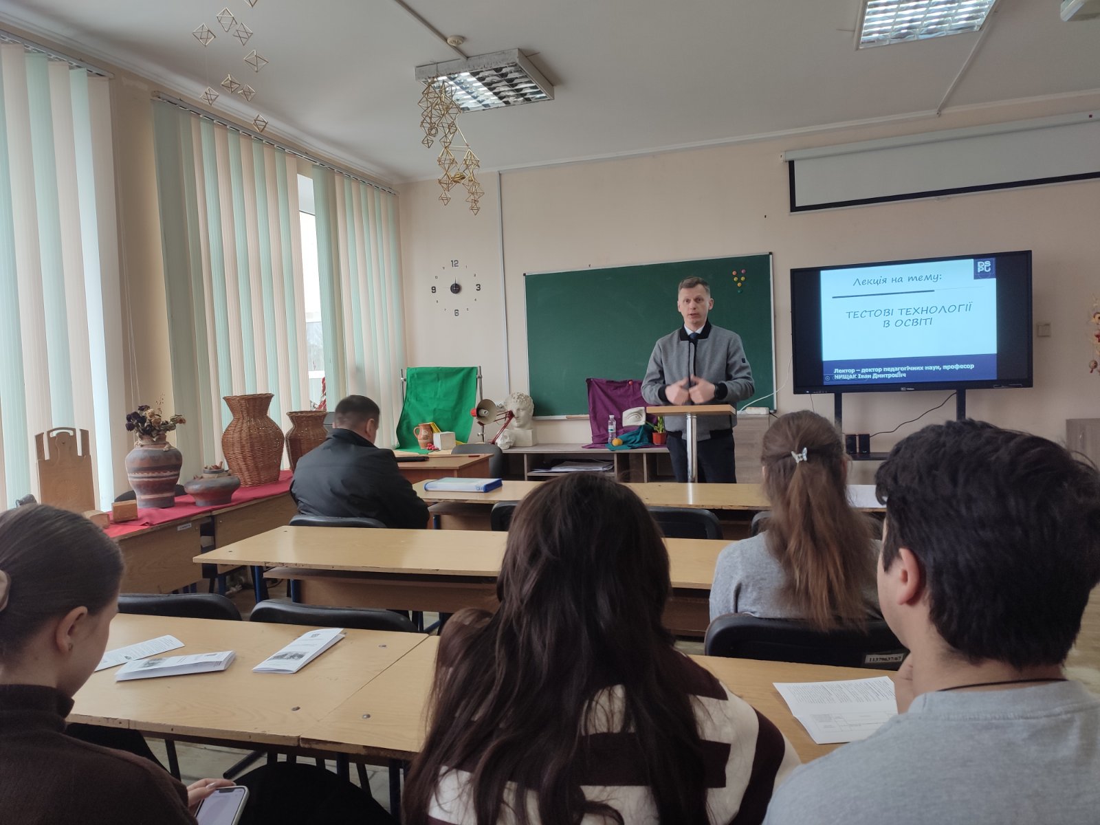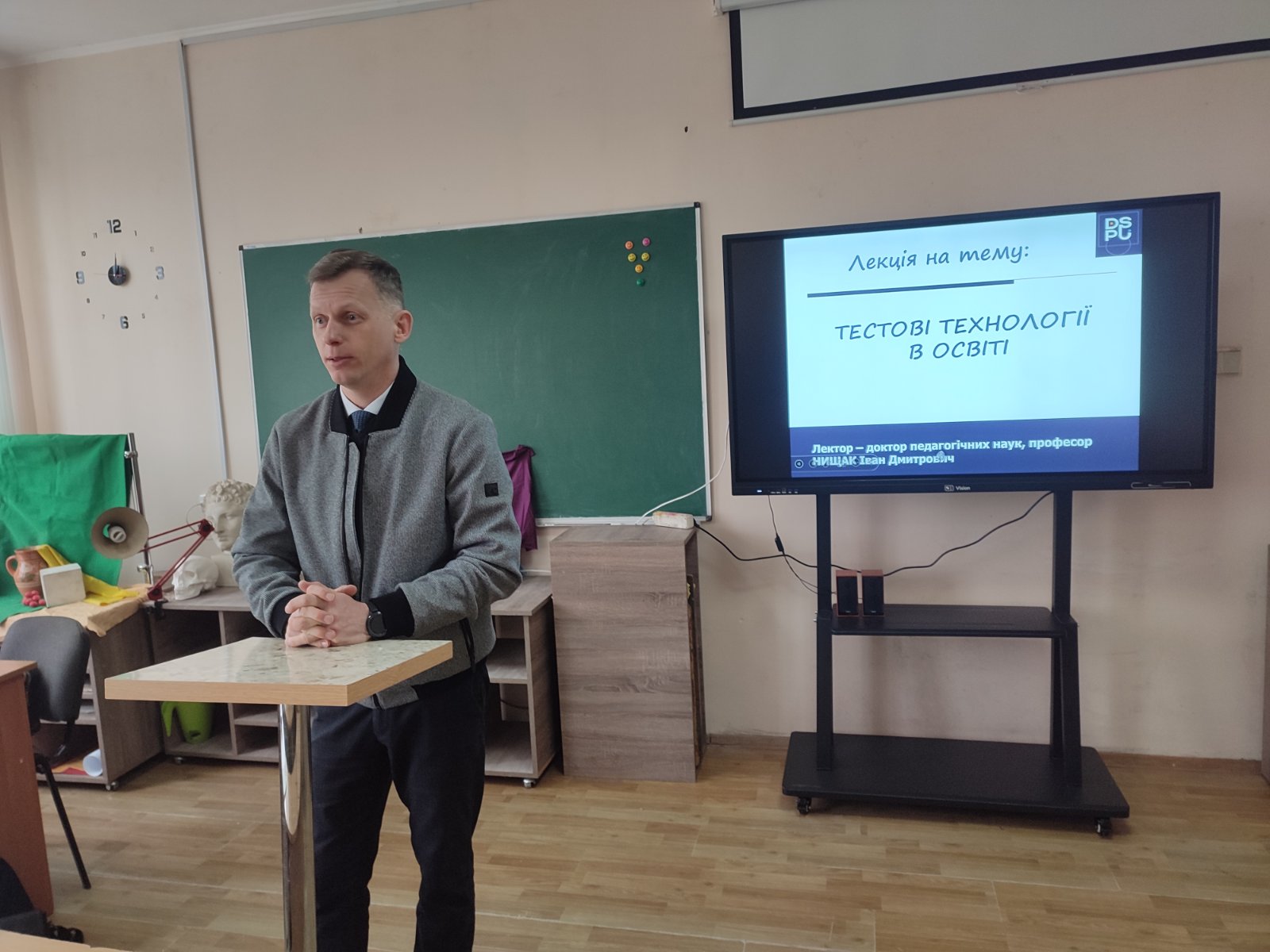 Під час зустрічі професор Іван Нищак прочитав виїзну лекцію на тему «Тестові технології в освіті». У своєму виступі він висвітлив сучасні підходи до оцінювання знань здобувачів освіти, розкрив сутність тестових методик, їх переваги та практичне значення у навчальному процесі. Особливу увагу було приділено ролі тестування у підвищенні об’єктивності оцінювання та формуванні якісної системи контролю знань.