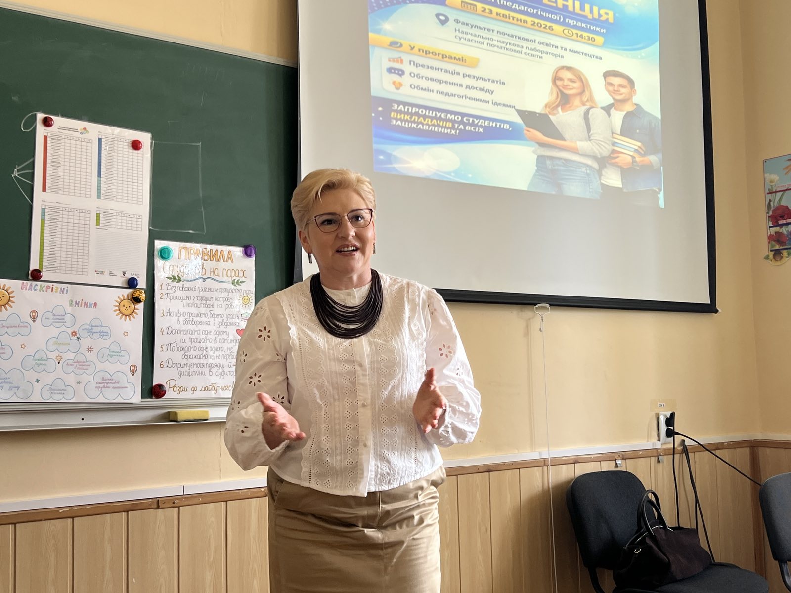 З вітальними словами до учасників звернулися деканка факультету Олена Кравченко-Дзондза і завідувачка кафедри педагогіки та методики початкової освіти, професорка Ірина Садова. У своїх виступах вони наголосили на важливості педагогічної практики як невід’ємної складової професійної підготовки майбутніх учителів, відзначили відповідальність і високий рівень підготовки студентів.