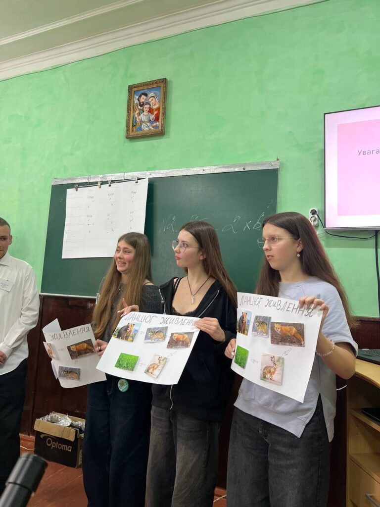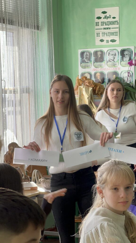 Перший професійний досвід студенти третього та четвертого курсів кафедри біології та хімії ( ОП «Біологія, здоровʼя людини та хімія») здобули під час підготовки та проведення інноваційного науково-пізнавального заходу «Біотичні взаємозвʼязки у природі». На запрошення учителя біології Стебницької гімназії № 11 імені Тараса Зозулі Уляни Ігорівни Холодової студенти відвідали школярів 27 листопада 2025 року і продемонстрували під час заняття свої знання і вміння з методики навчання біології ( викладач – канд. пед. наук, доц. Волошин С. В. ) та зоології ( викладач- канд. біол. наук, доц. Волошинська С. Я.)