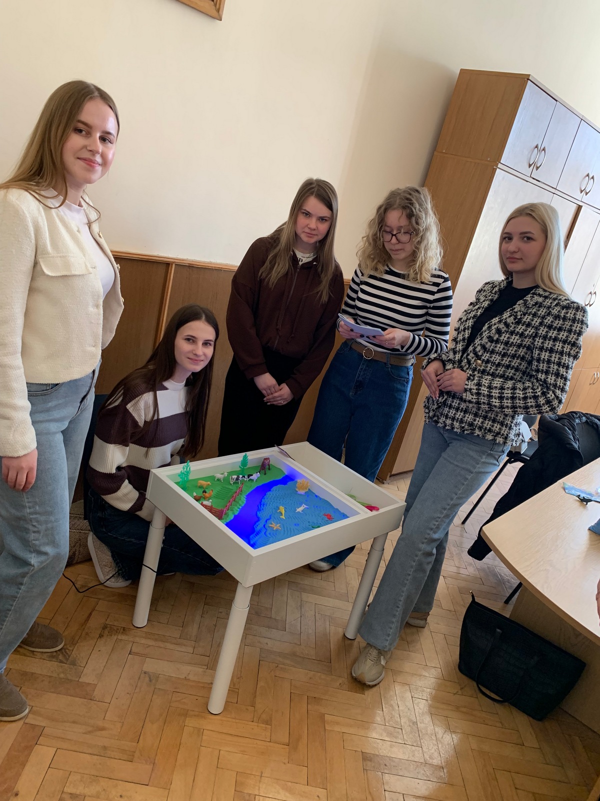 На фото: студенти університету працюють на практичному занятті з використанням технології сендплей під керівництвом професорки Тетяни Пантюк.
