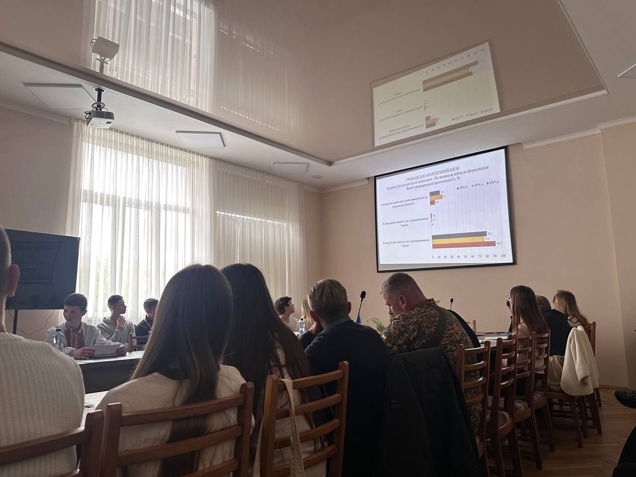 Доцентка Оксана Зелена представила доповідь на тему: «Вплив російсько-української війни на громадянську ідентичність студентської молоді (за результатами соціологічного моніторингу)». Виступ базувався на даних трьох хвиль емпіричного дослідження в Дрогобицькому державному педагогічному університеті імені Івана Франка «Соціологічний портрет першокурсника в умовах війни», інструментарій якого було розроблено навчально-науковою соціологічною лабораторією університету.