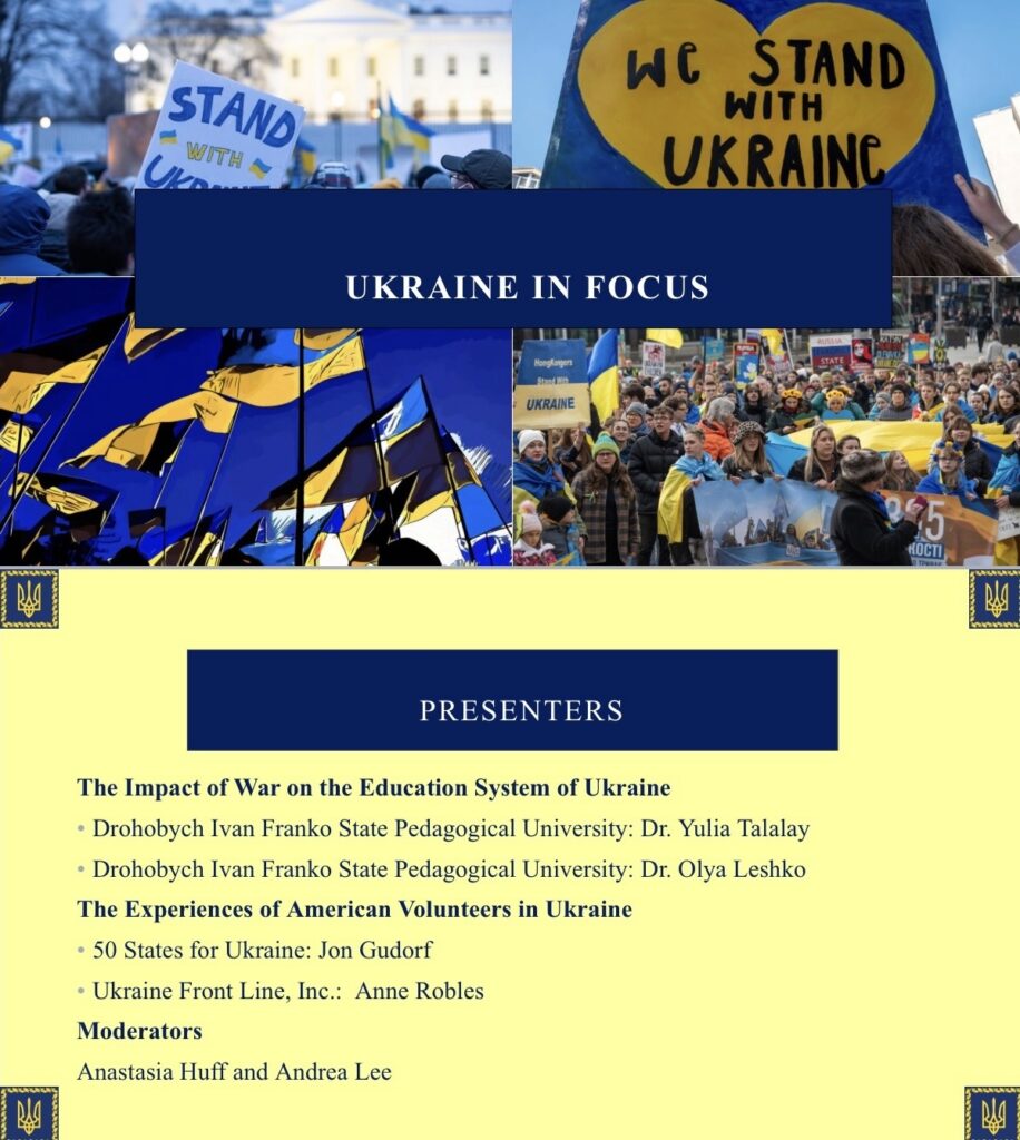 У середу, 25 березня, відбулася міжнародна онлайн-подія «Ukraine in Focus: Learn from Ukrainian Educators and American Volunteers», яка об’єднала освітян та волонтерів з України та США задля обміну досвідом і обговорення актуальної ситуації в Україні.