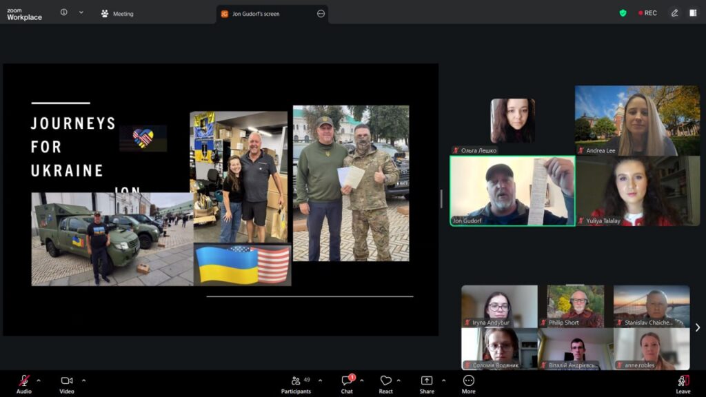 До обговорення також долучилися американські волонтери, які безпосередньо працюють з Україною. Серед них – Jon Gudorf, представник ініціативи 50 States for Ukraine, та Anne Robles з організації Ukraine Front Line, Inc. Вони поділилися власними історіями допомоги Україні, розповіли про гуманітарні місії та досвід співпраці з українськими громадами.