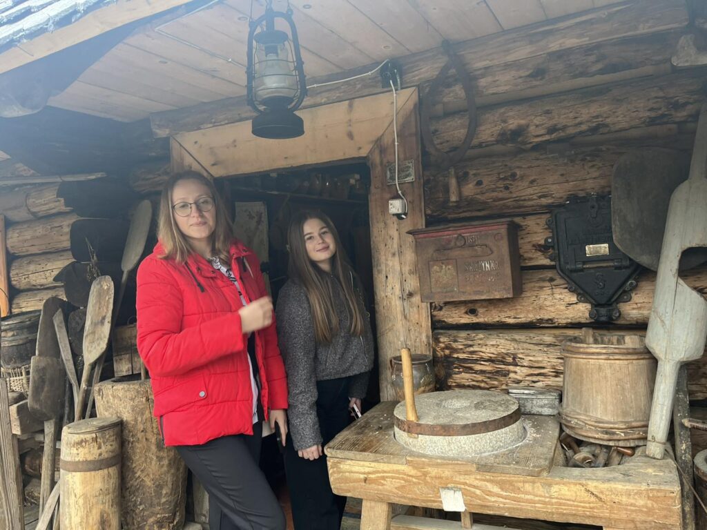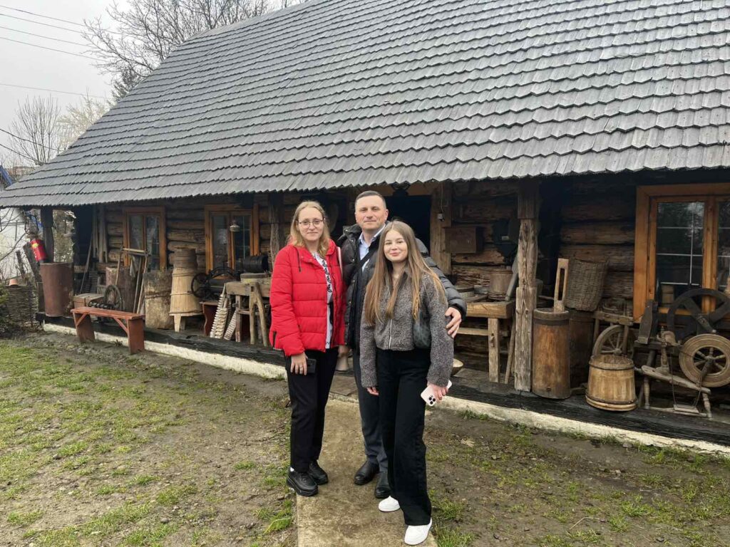 Студенти й викладачі також відвідали музей «Карпатська хата» – унікальний куточок затишку в серці Борислава, осередок локальної культури та звичаїв. Хата побудована в 1802 році з ялинових зрубів без жодного цвяха, а дах покритий нафтованою крицею. Інтерʼєр наповнений оригінальними меблями та колекцією посуду ручної роботи. Відвідувачі побували за прилавком у столітньому склепі та розглянули старожитності в шпихлірі. Господар розповів про кожен експонат у своєму музеї, довгу історію будівель. Сподіваємося, що поєднання профорієнтаційних зустрічей із цікавими екскурсіями стане доброю традицією на нашому факультеті.