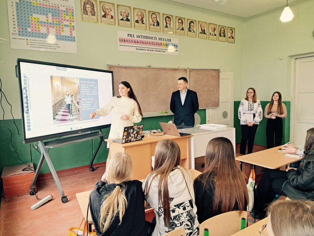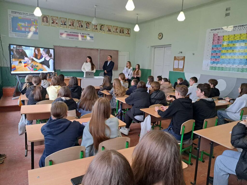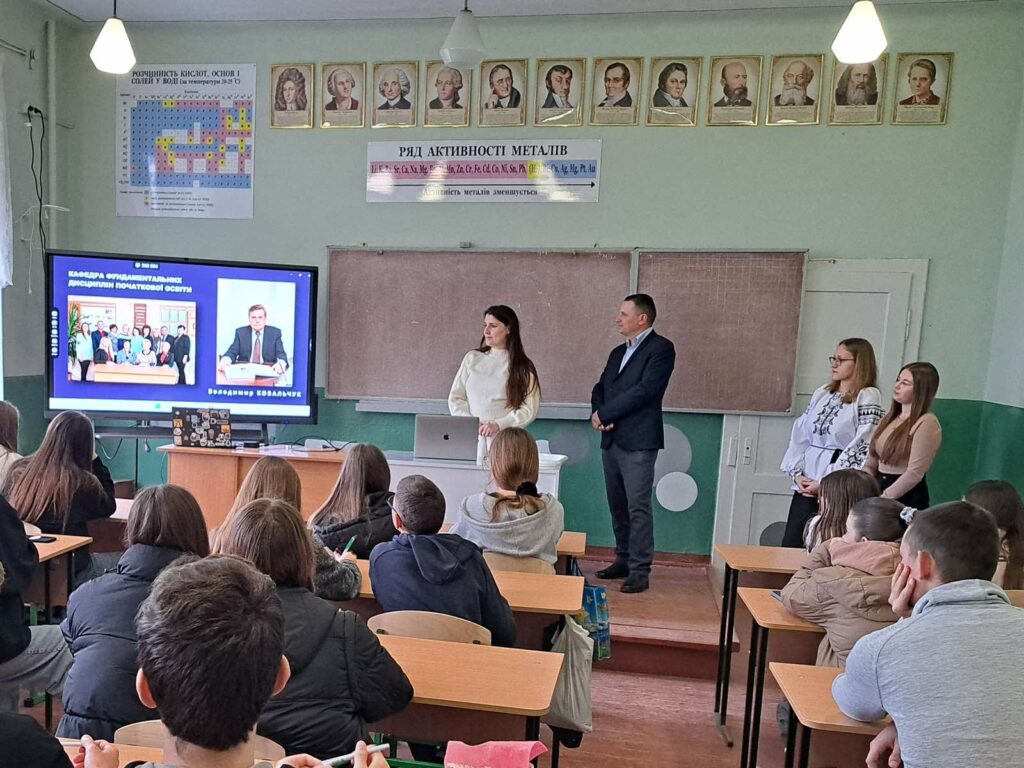 1 квітня студенти групи ПОІ-2327Б разом із кураторкою доцент кою кафедри фундаментальних дисциплін початкової освіти Анною Огар та доцентом цієї ж кафедри Іваном Василиківом провели зустріч у Бориславському ЗЗСО І-ІІІ ступенів № 8, де розповіли старшокласникам про освітні програми, за якими здійснюється підготовка здобувачів вищої освіти на факультеті початкової освіти та мистецтва та про наші здобутки. Студентки презентували відеоролик про свою спеціальність, а учні цікавилися в них умовами навчання та проживання в гуртожитку, а також програмами академічної мобільності.