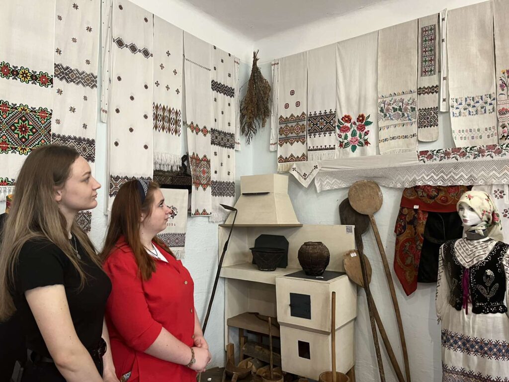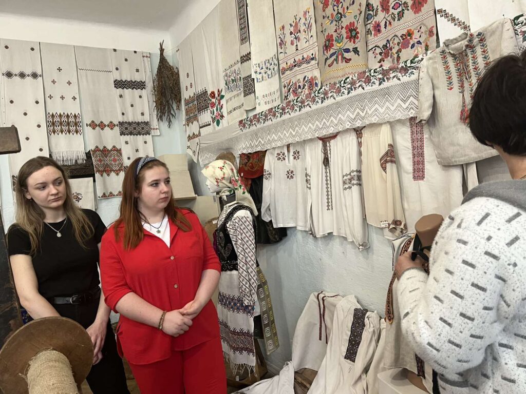 Студенти й викладачі також відвідали зразковий Музей українського народного побуту – унікальний етнографічний куточок у закладі освіти, організований і дбайливо збережений педагогами. Це особливе місце, в якому легко зануритися в атмосферу традиційного українського життя минулого. Тут зібрано унікальні експонати, що відображають побут, культуру, звичаї та ремесла українського народу. Студенти та викладачі мали змогу не лише подивитися, а й спробувати попрацювати на віялці, ткацькому верстаті, торкнутися органних струн, переглянути свідоцтва учнів школи українською, польською, німецькою мовами. Особливо щемливі розповіді педагогинь про речі, які належали їхнім сімʼям: дивовижно, як одна непримітна річ може розповісти історію цілої родини. Вразила історія про мандоліну: туга за рідним домом змусила власника музичного інструмента піти далеко в ліс, щоб його звуків не було чути ворогам, а коли він повернувся, то його криївку було зруйновано, а побратимів вбито. Віднайдені листівки “За самостійну соборну Українську Державу” нагадують, яка довга боротьба українського народу.