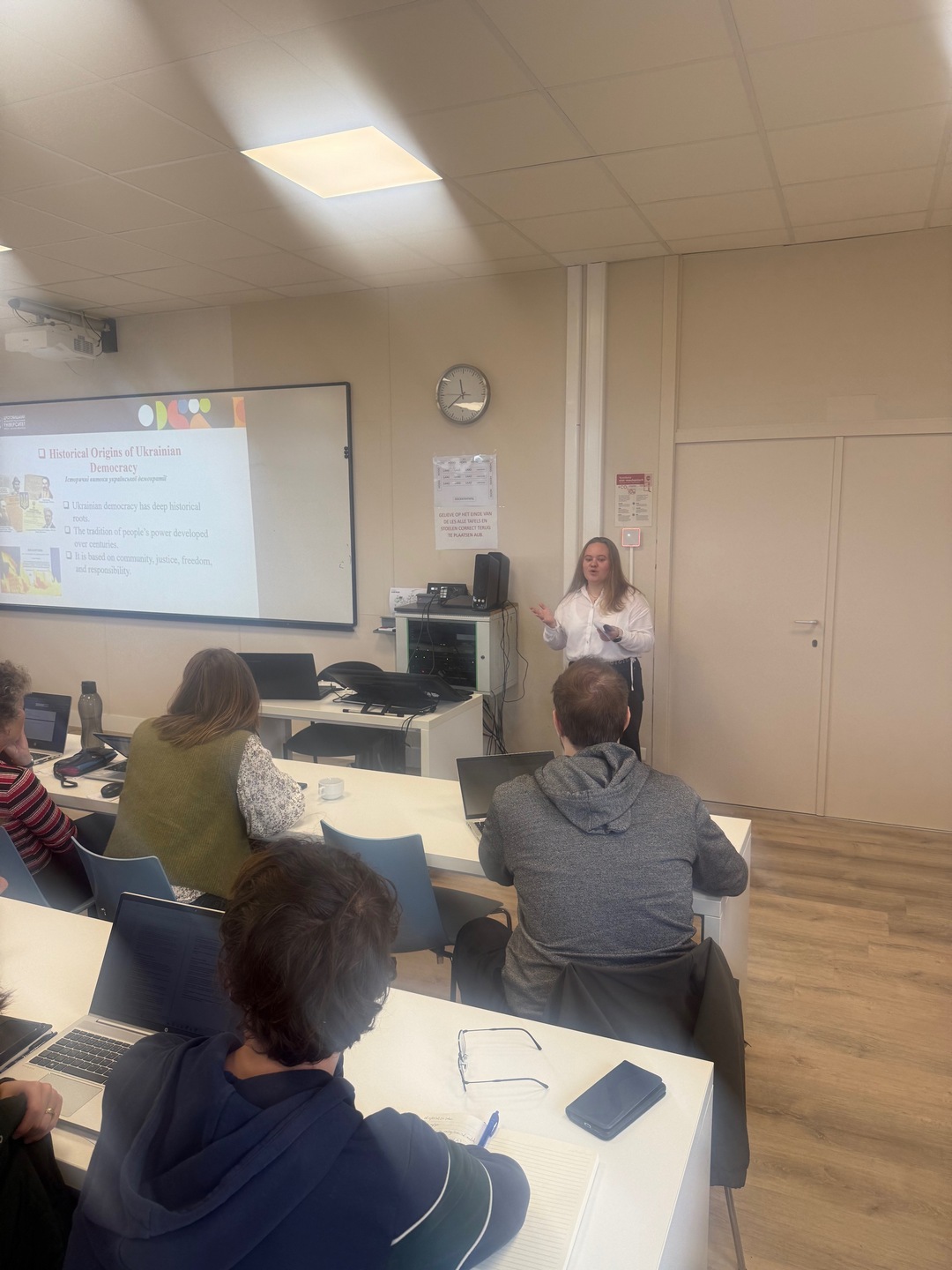 Упродовж тижня викладачі Дрогобицького університету провели лекції для студентів Університету прикладних наук ВІВЕС, а також закордонних студентів, які у цьому семестрі навчаються у даному університеті, де висвітлили теми війни в Україні, нових викликів у цей непростий час, а також історію формування демократії в Україні та сучасний стан демократичних процесів.